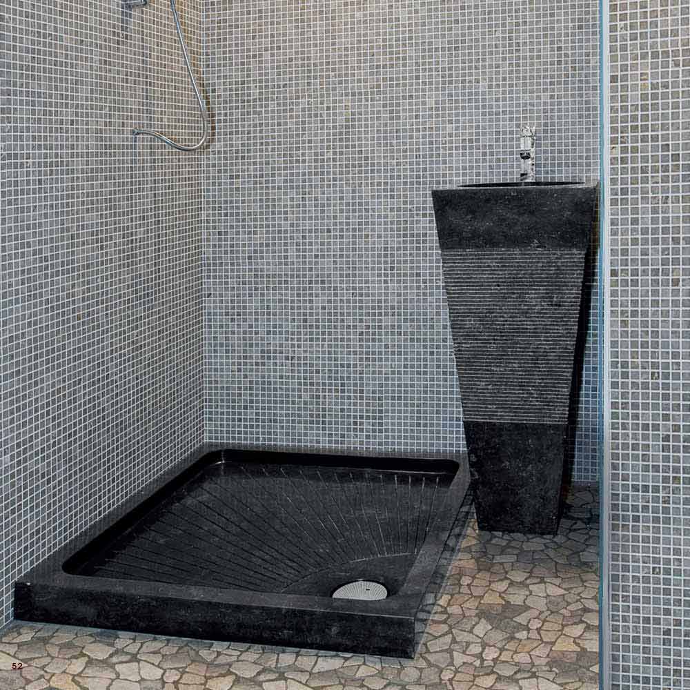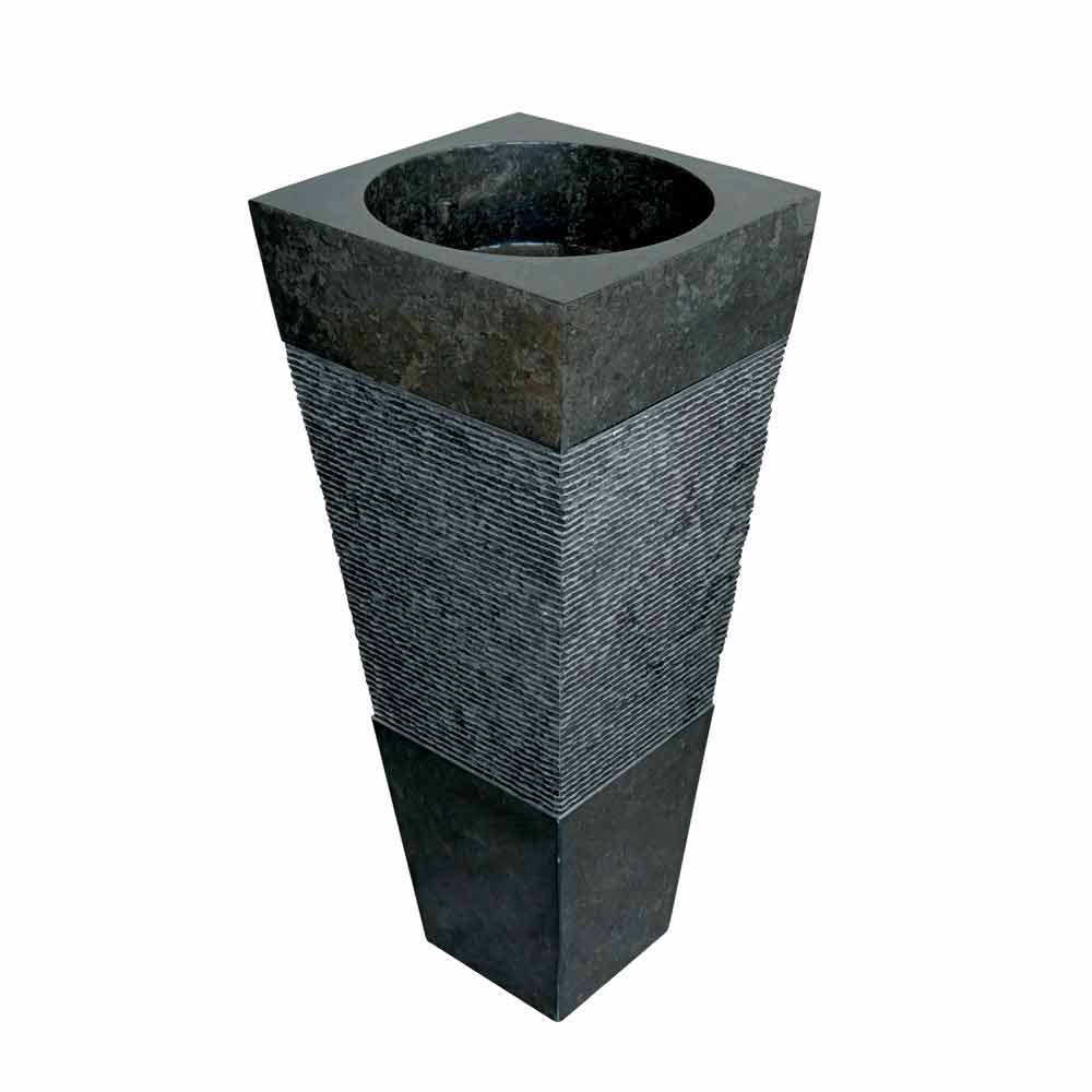 Lavabo de columna piramidal realizado en piedra natural de color negro modelo Nias.