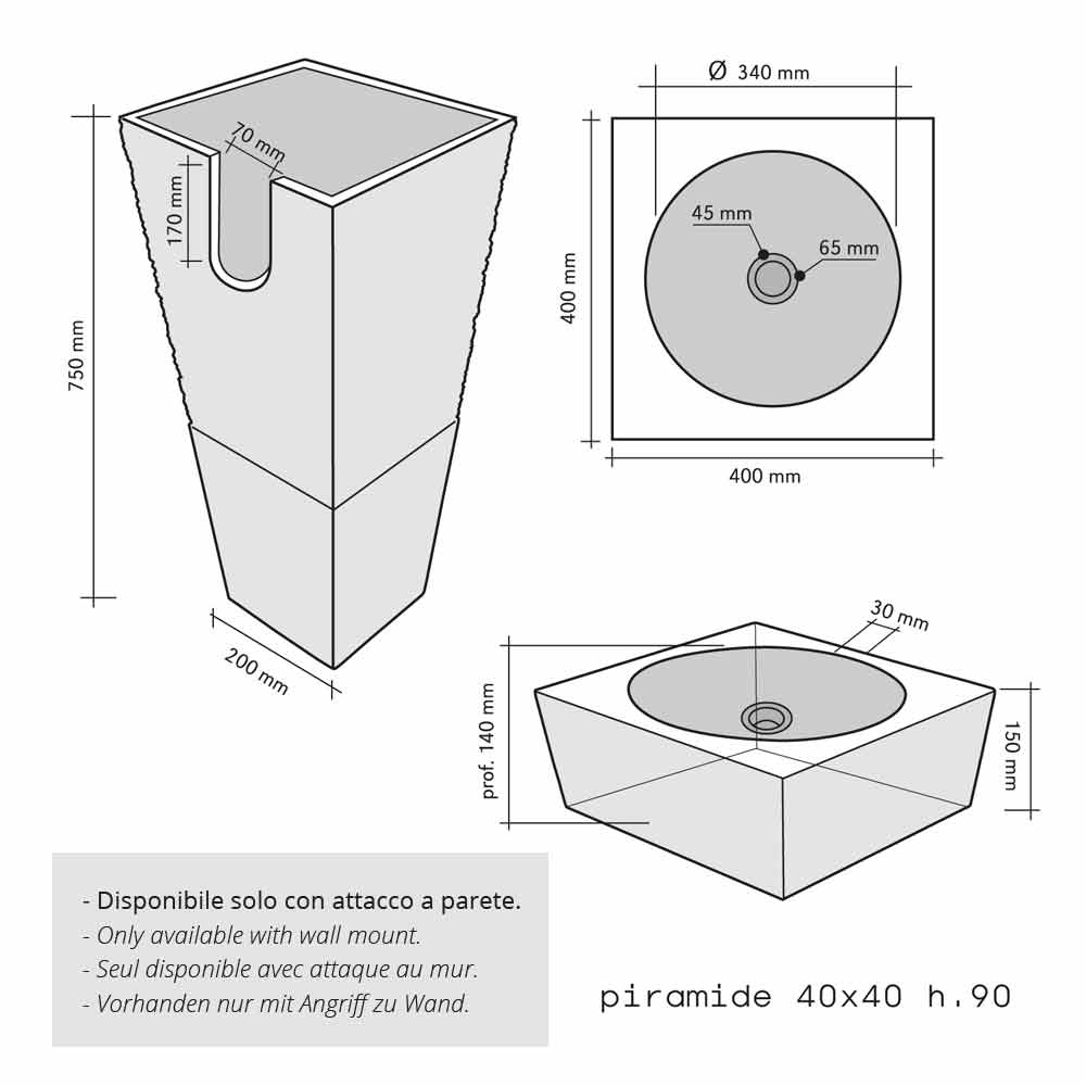 Lavabo piramidal de columna de piedra natural color negro modelo Nias