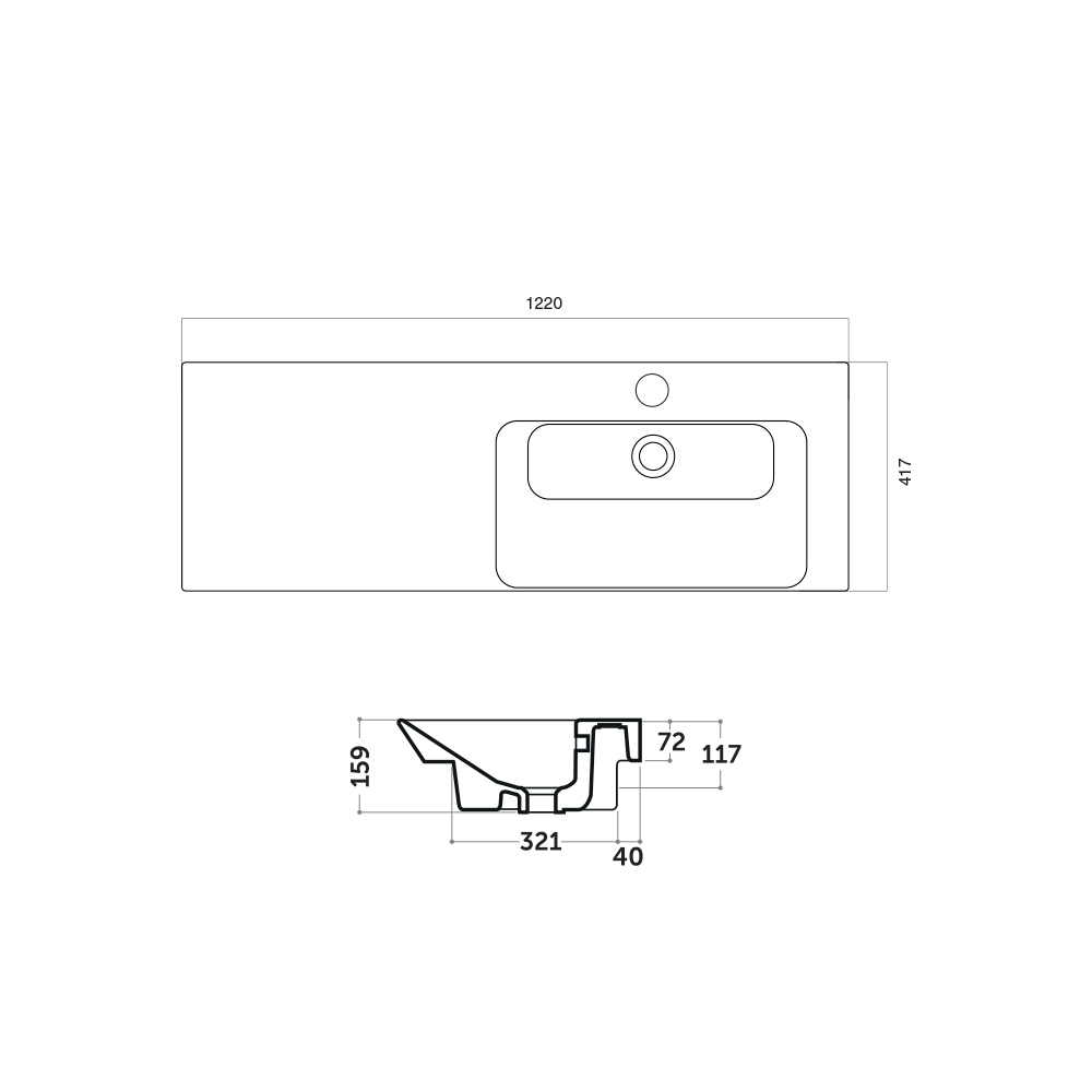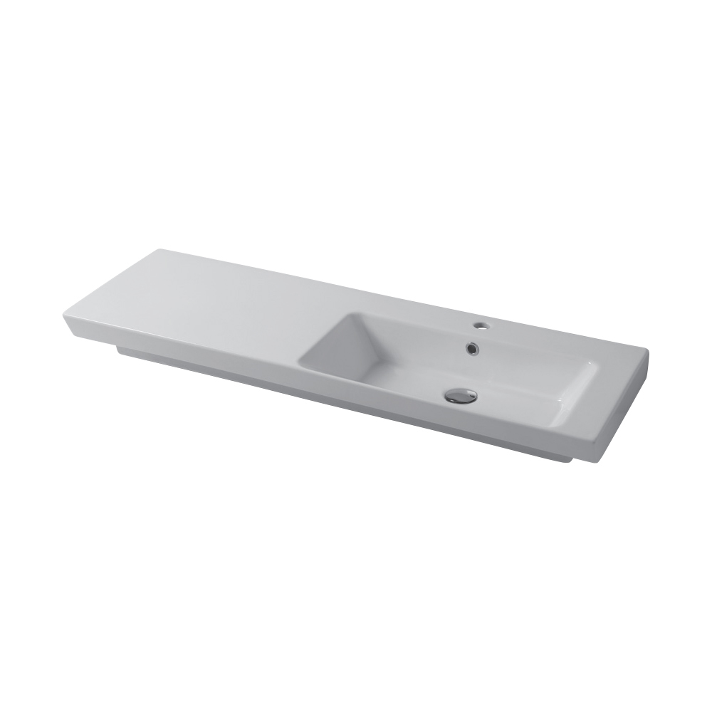 corte frontal inclinado , que aporta elegancia e impulso. Una serie de lavabos importantes, también gracias a las superficies de apoyo laterales y a la variedad de dimensiones, una respuesta ideal a las diferentes necesidades de espacio y funcionalidad.