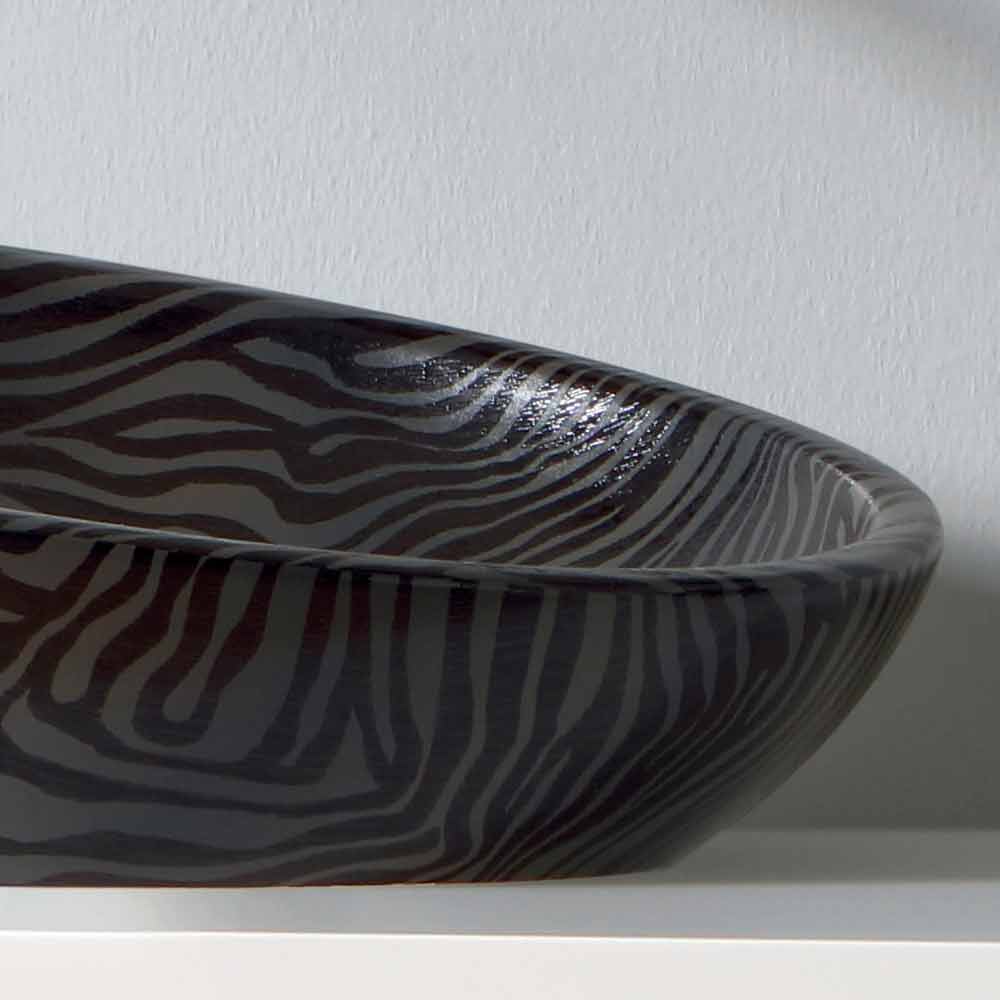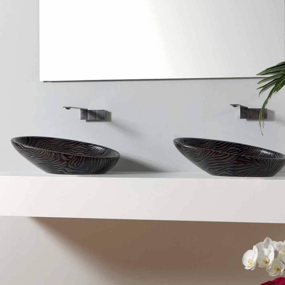 Glossy es el lavabo sobre encimera fabricado en Italia por maestros artesanos en cerámica con acabado cebra plateado.