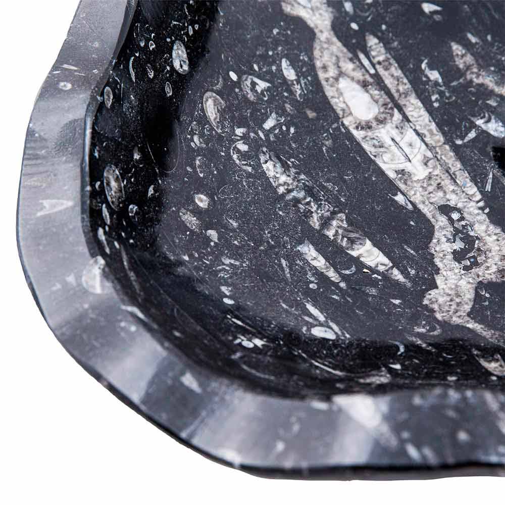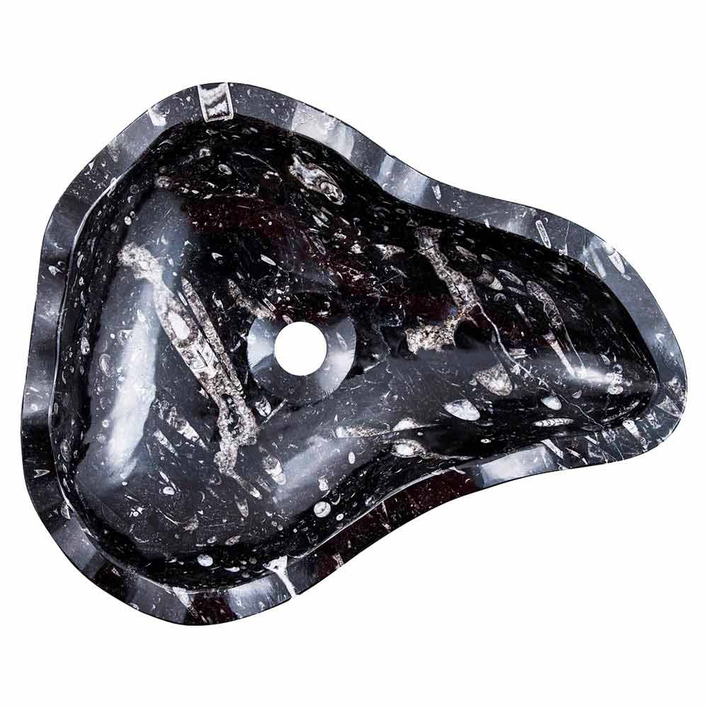 El lavabo Burgeo está realizado con formas y materiales que encantan y fascinan. Está completamente hecho a mano en mármol con fósiles de millones de años en su interior.