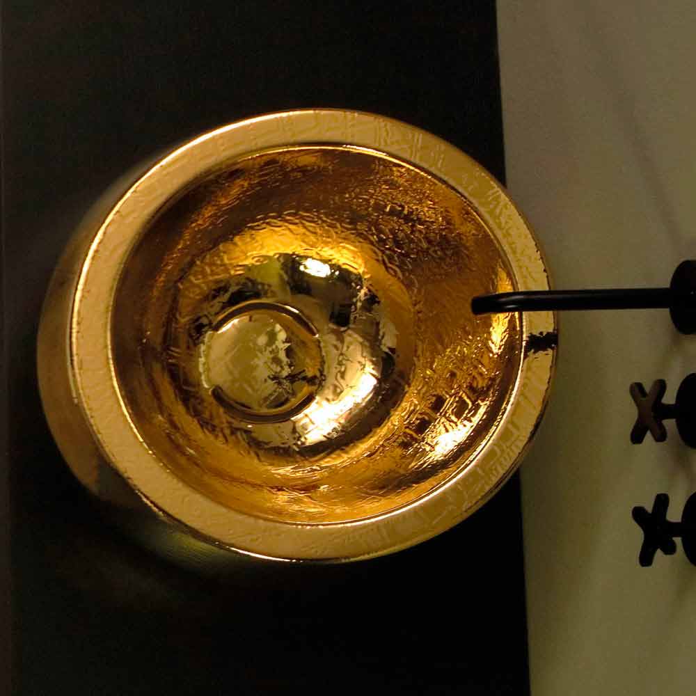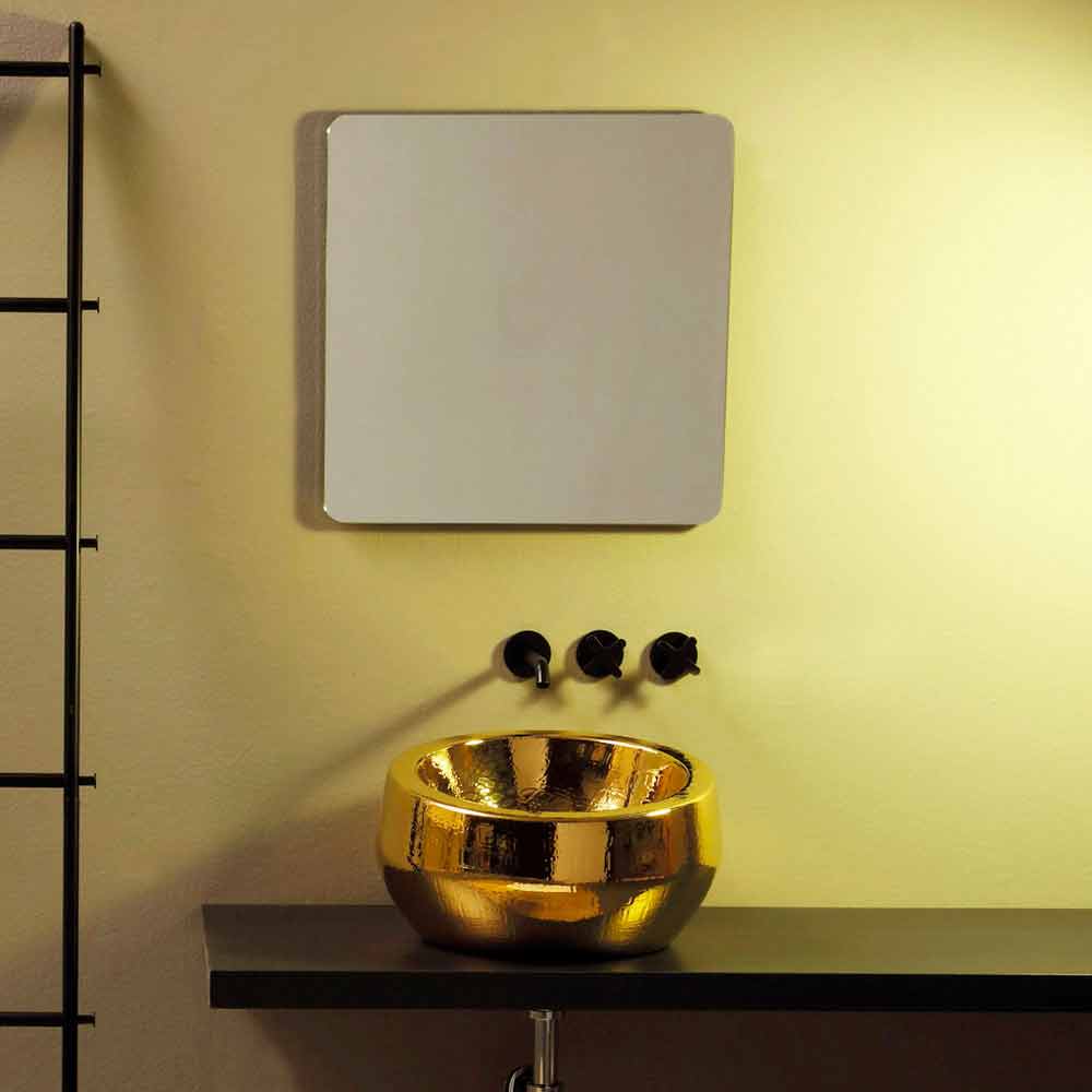Lavabo sobre encimera de diseño redondo en cerámica dorada Elisa made in Italy