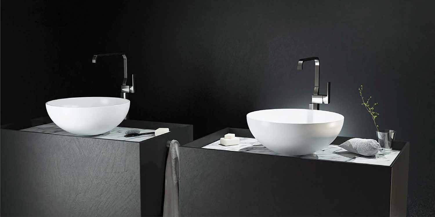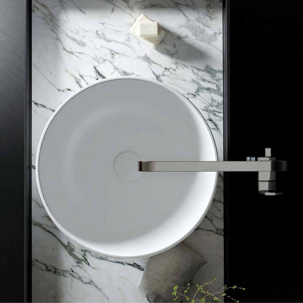 Donnas es un lavabo independiente hecho de Solid Surface con un plano circular.