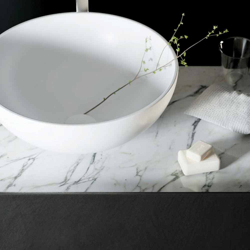 Fregadero circular de superficie sólida hecho en Italia, Donnas.