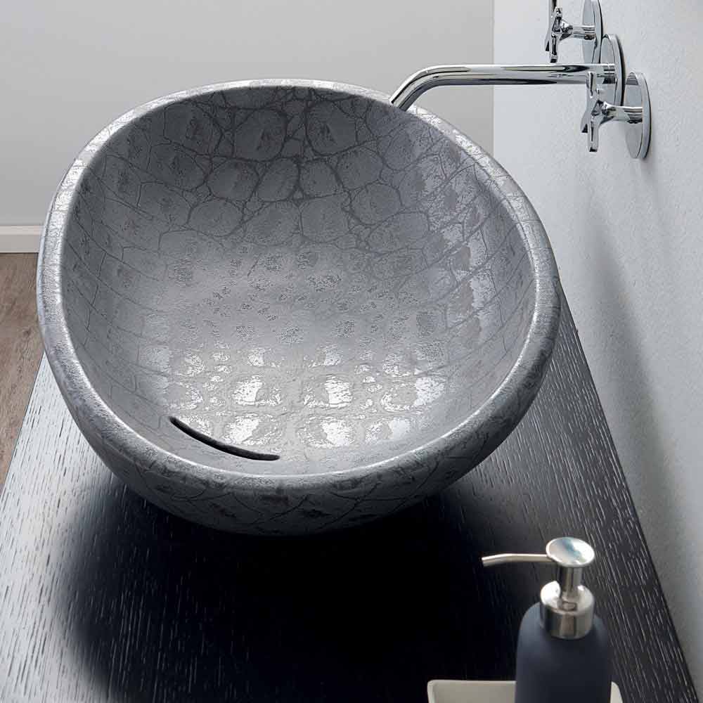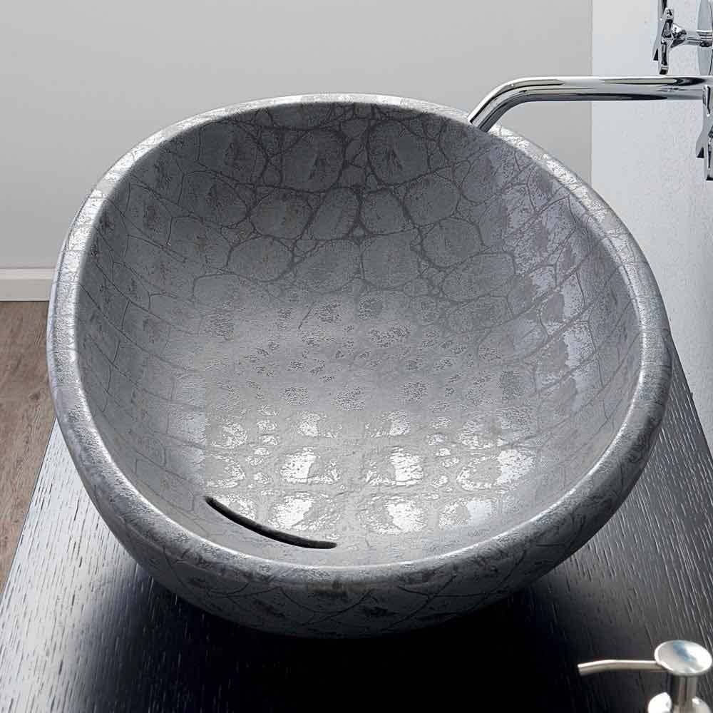 Lavabo sobre encimera de cerámica con estampado de cocodrilo gris brillante hecho en Italia