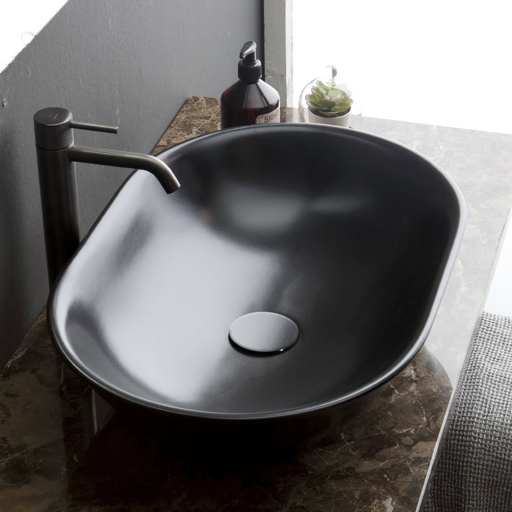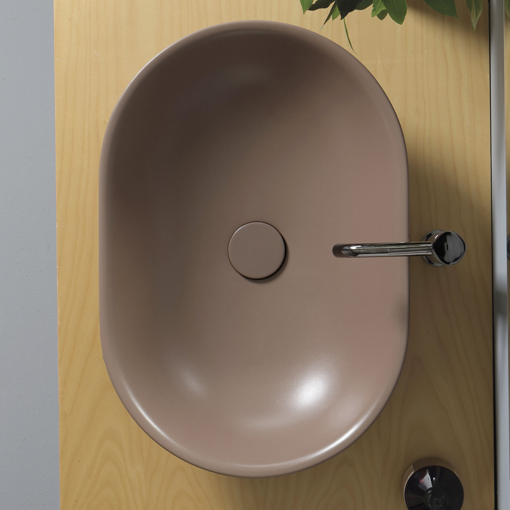 Lavabo sobre encimera ovalado realizado en cerámica coloreada con acabado mate mediante una producción artesanal 100% Made in Italy . Un diseño de líneas suaves y armoniosas caracterizado por la sencillez y versatilidad . De hecho, su forma se adapta perfectamente a cualquier contexto estilístico moderno, aportando un toque exclusivo capaz de completar el amueblamiento de la zona del baño de una forma única y vanguardista. Para enriquecer la estética del lavabo son los maravillosos colores propuestos que aseguran un resultado refinado a pesar de un estilo sobrio y elegante .