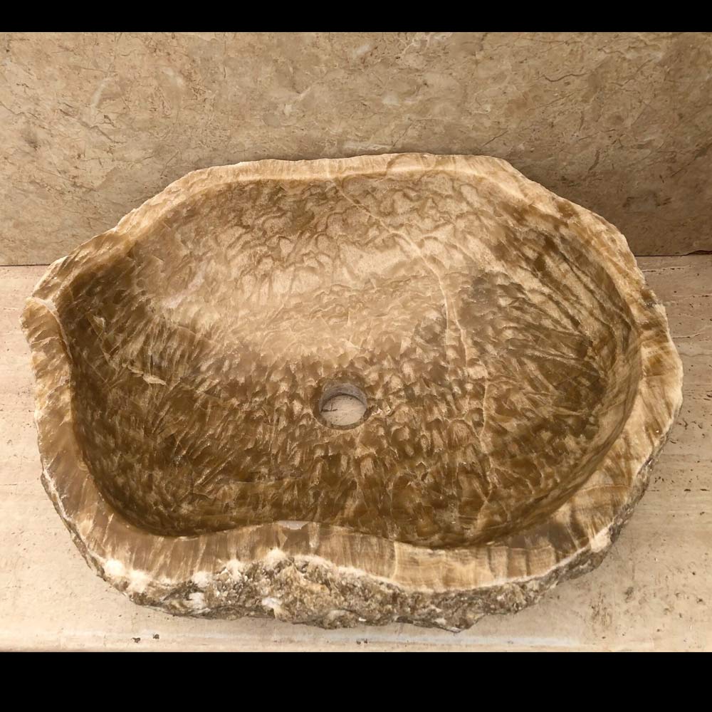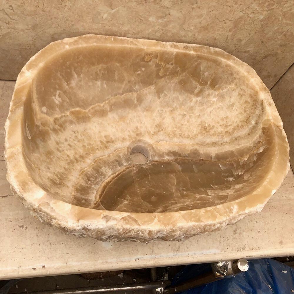 Lavabo sobre encimera en piedra natural, hecho a mano.
