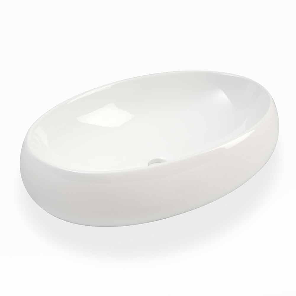 Lavabo sobre encimera ovalado de estilo moderno hecho a mano en Italia en cerámica blanca brillo.