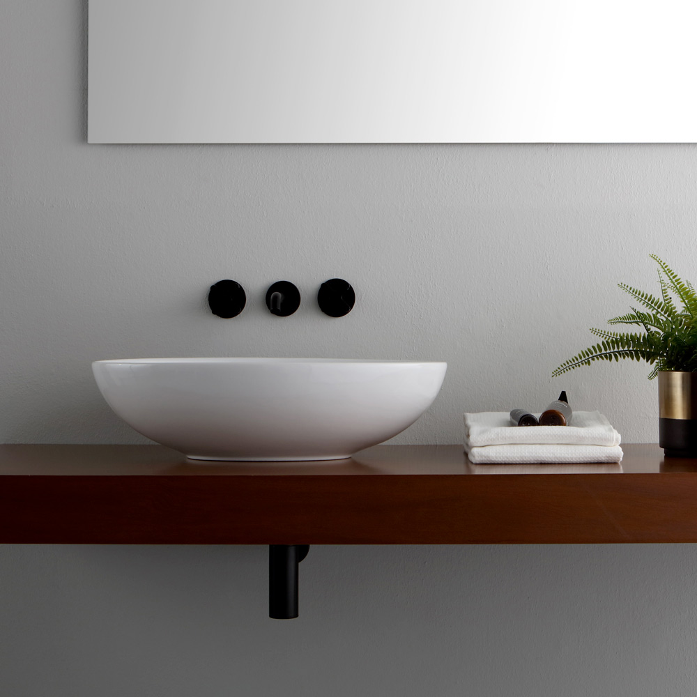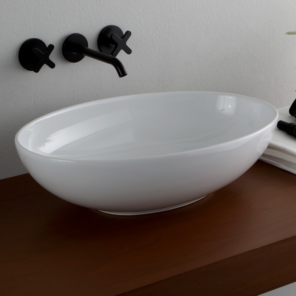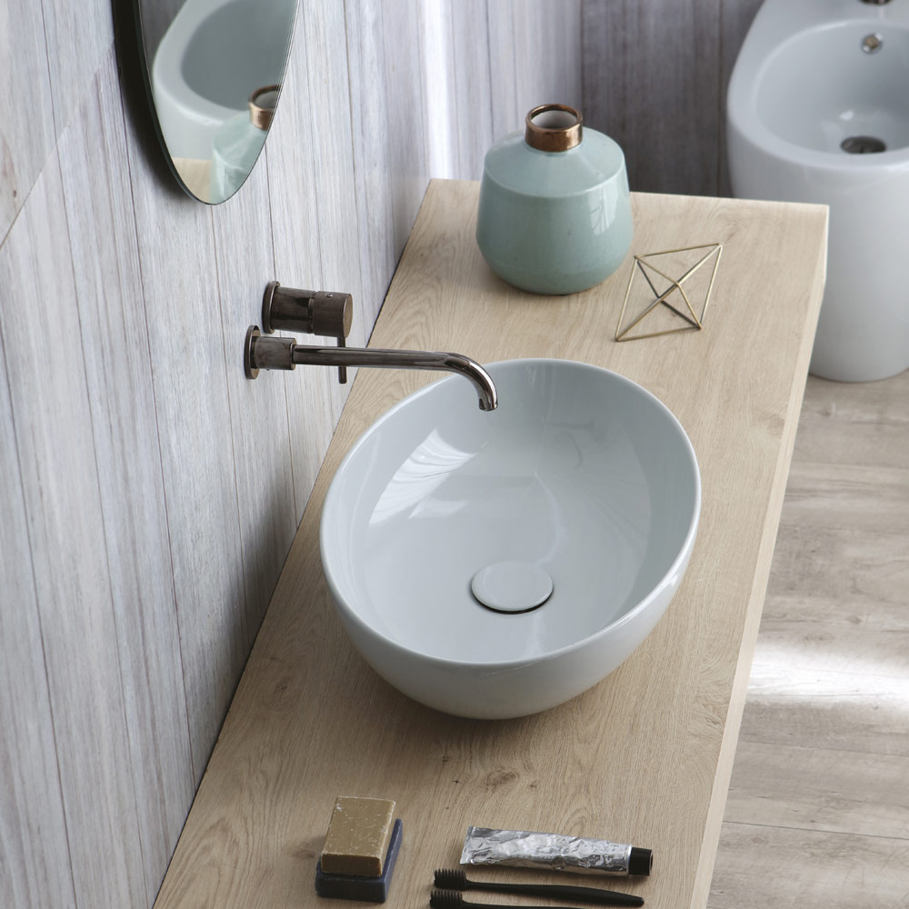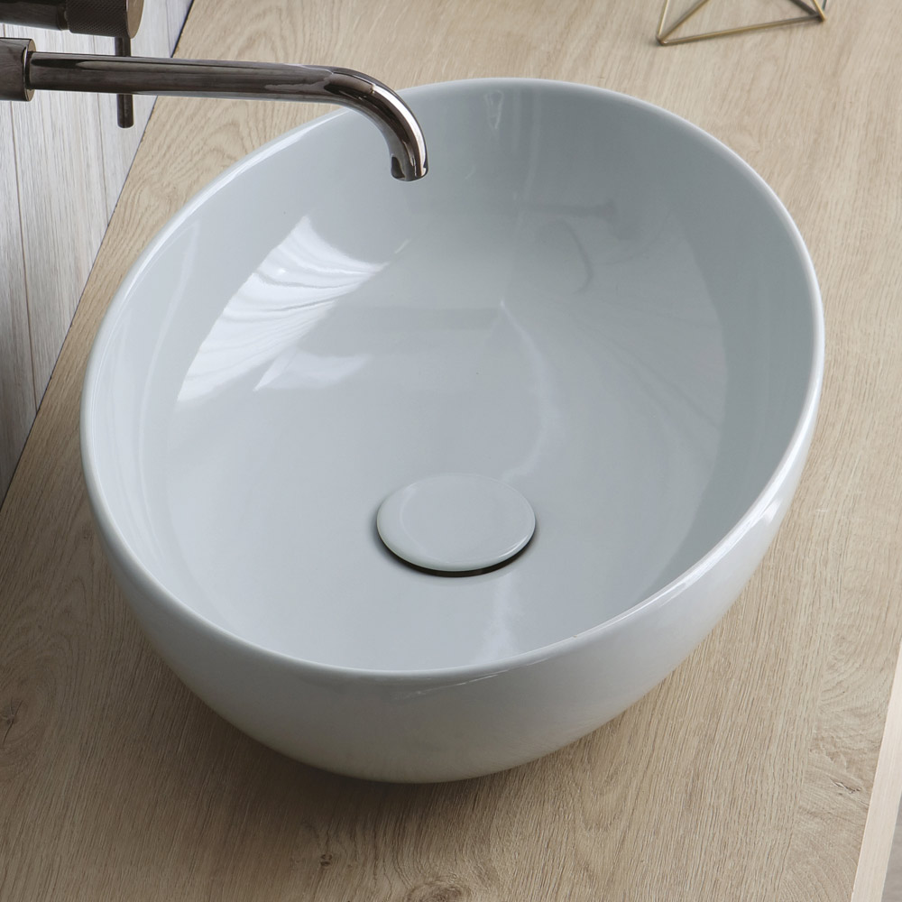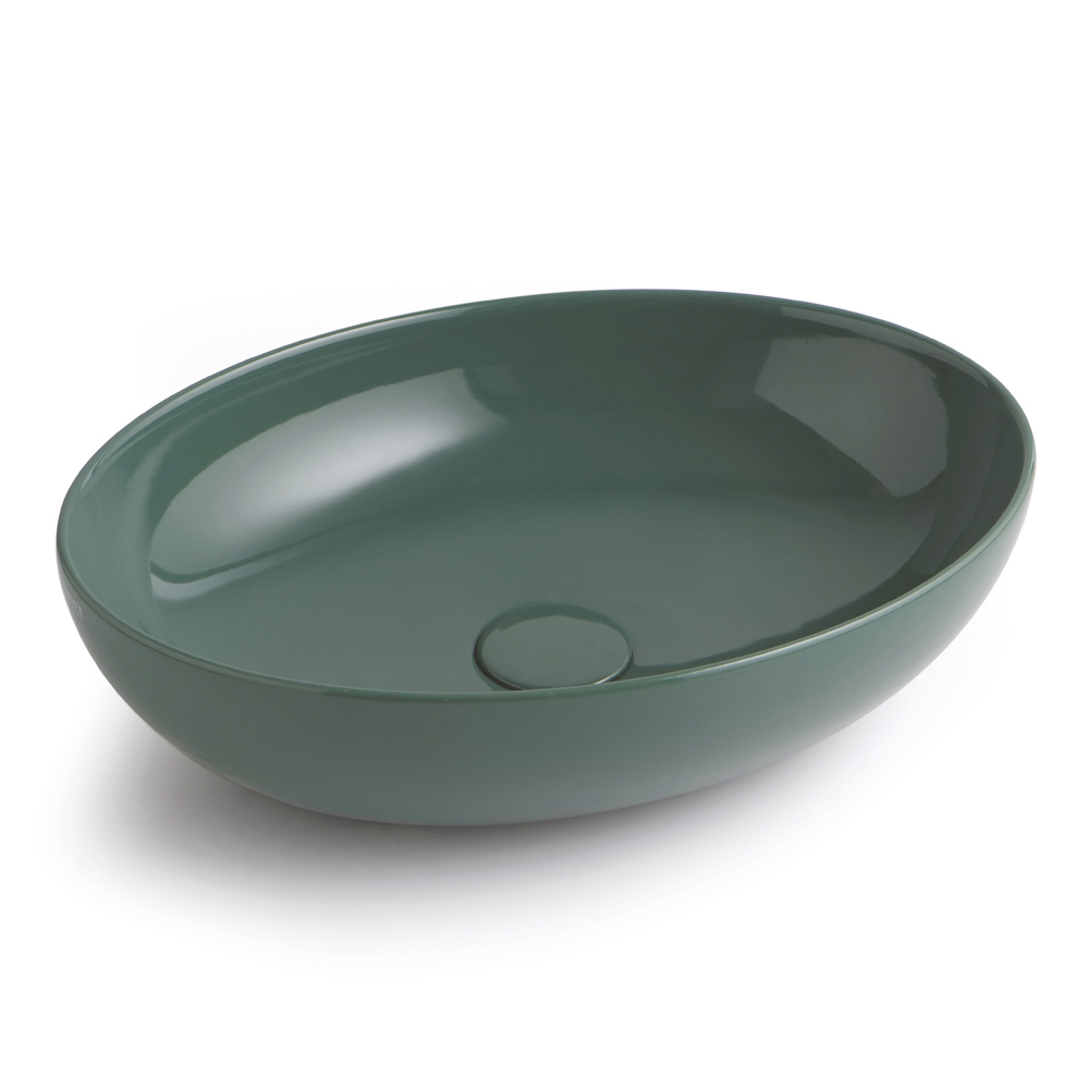 Lavabo sobre encimera ovalado en cerámica coloreada con acabado brillante realizado artesanalmente 100% Made in Italy . Un producto de sabor moderno y estética versátil diseñado y creado para amueblar espacios de baño con un estilo minimalista en el que completa el look con un toque de personalidad y carácter . Su diseño sencillo y líneas armoniosas se adaptan perfectamente a cualquier situación estilística, enriqueciendo el mobiliario circundante con un toque creativo y convirtiéndose así en el verdadero protagonista de la estancia.