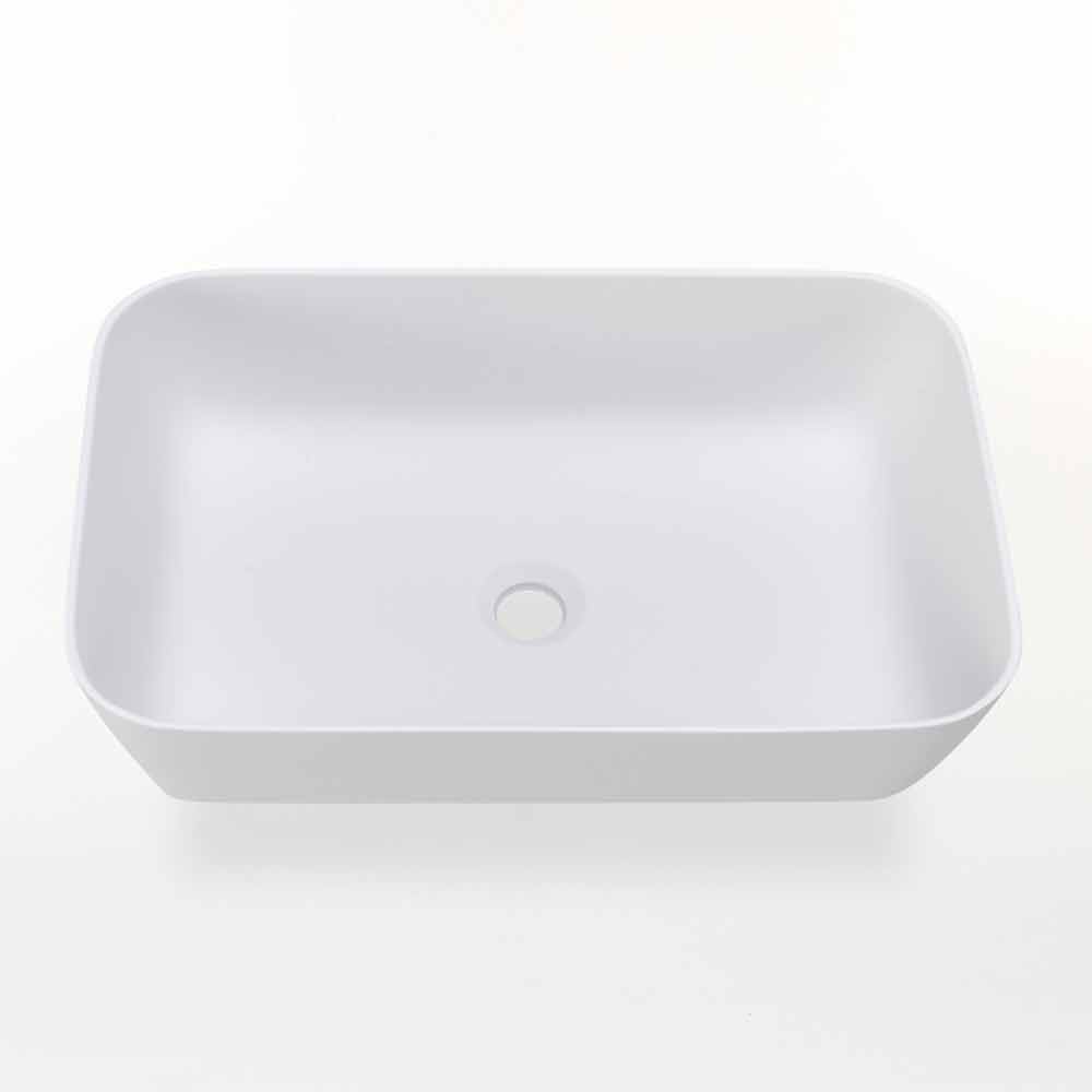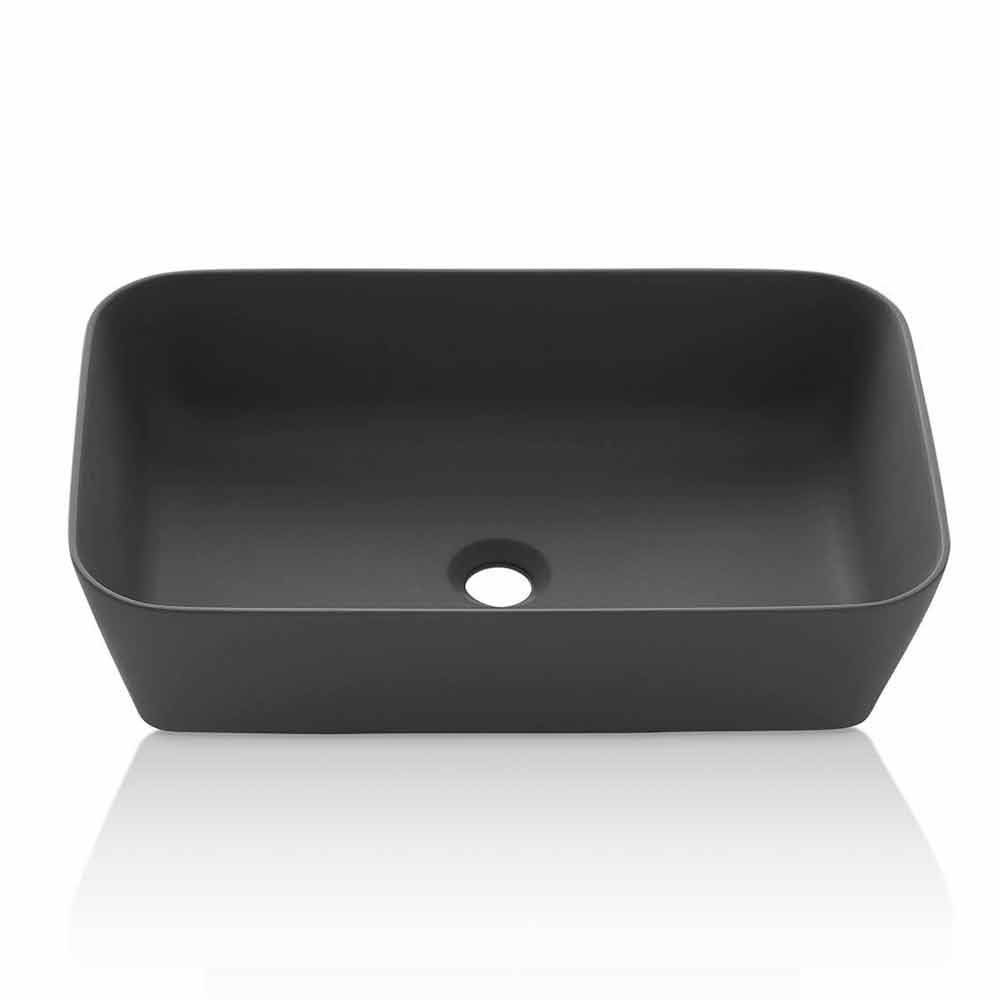 Lavabo sobre encimera rectangular de estilo moderno fabricado artesanalmente en Italia en resina opaca.