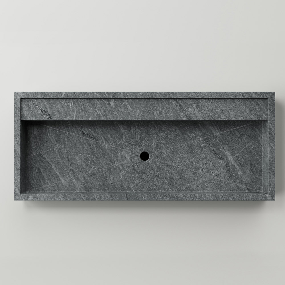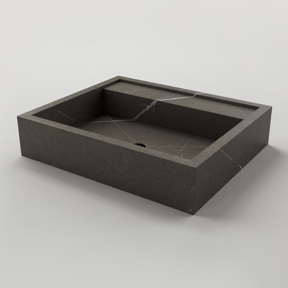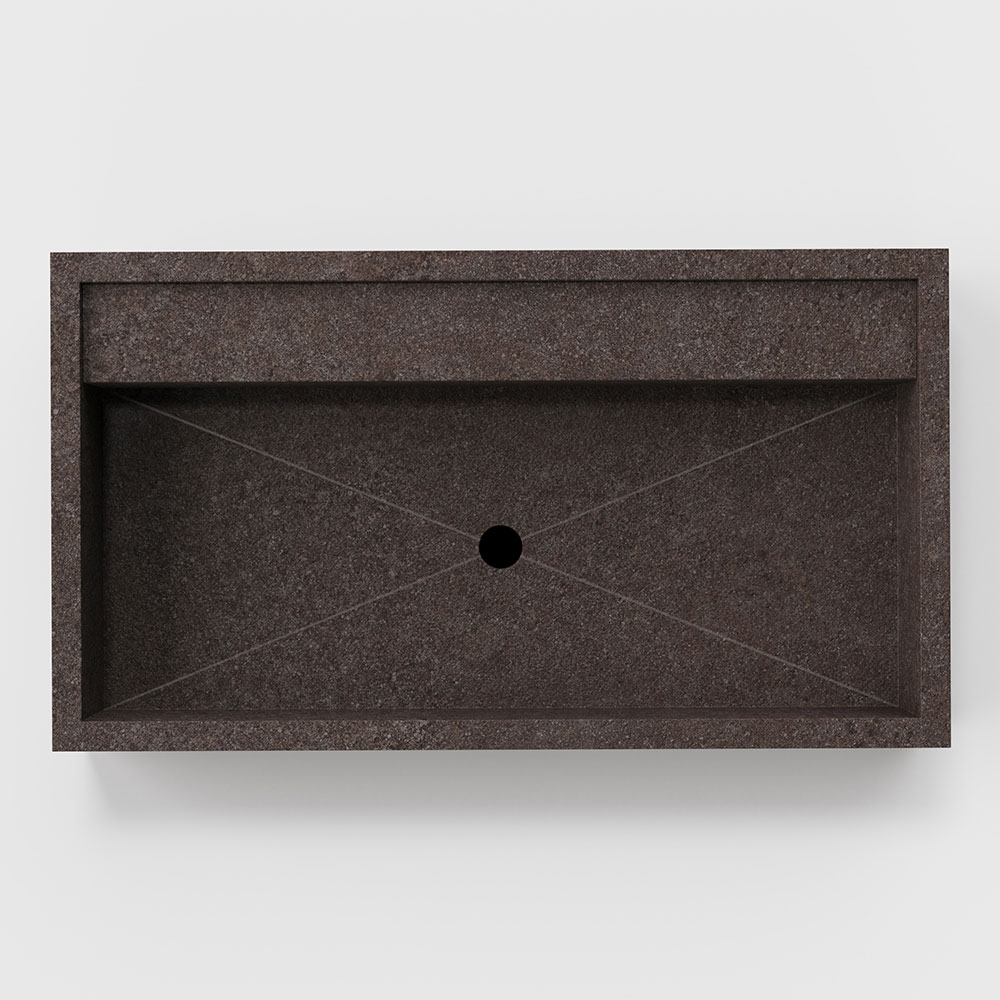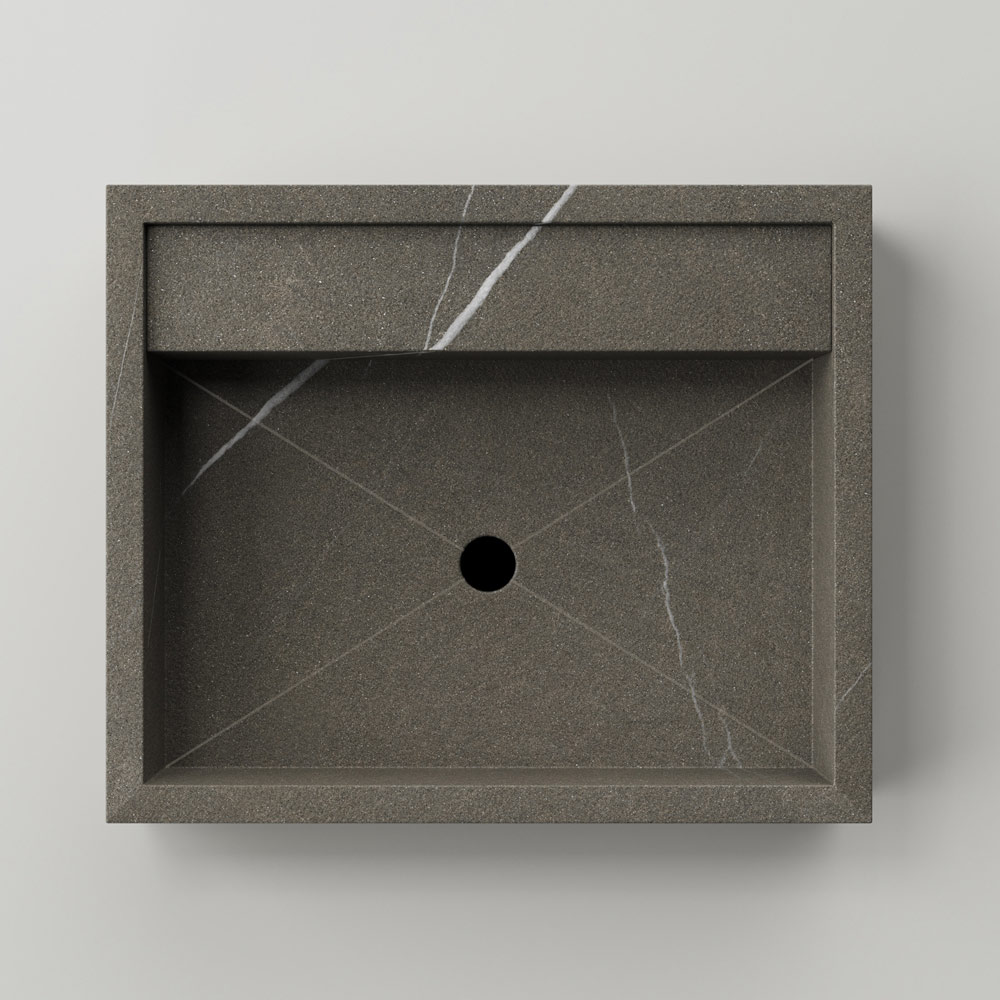 Lavabo sobre encimera rectangular de gres porcelánico efecto piedra Made in Italy.