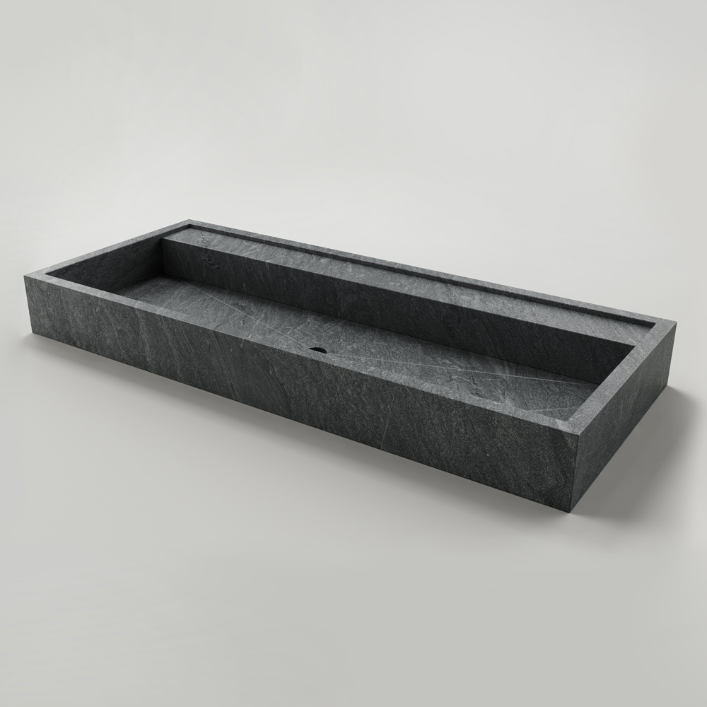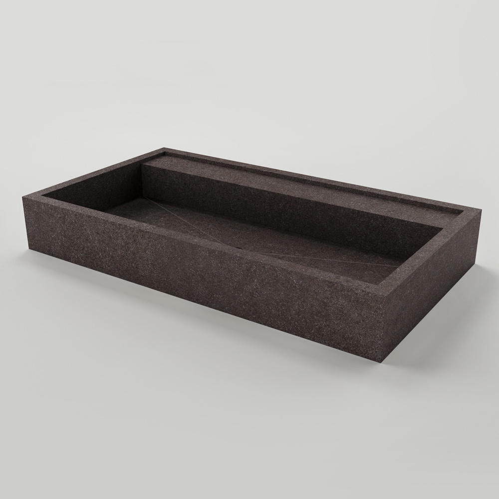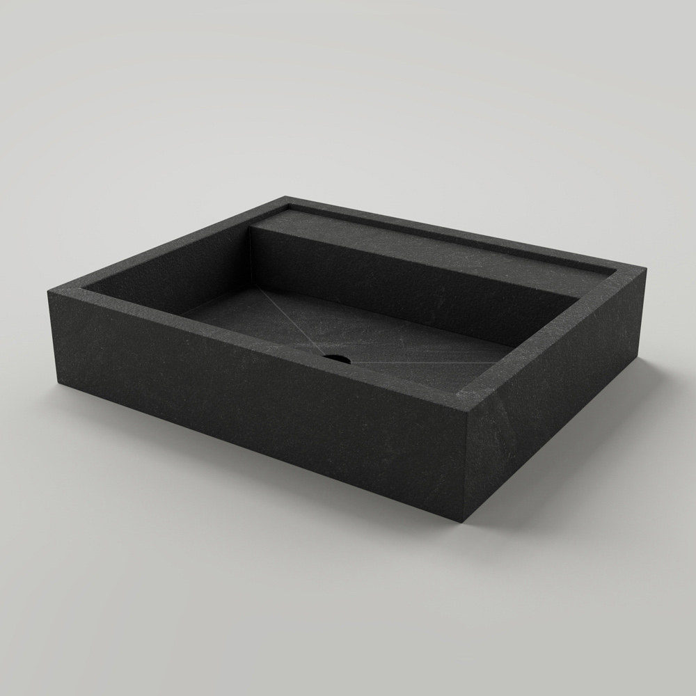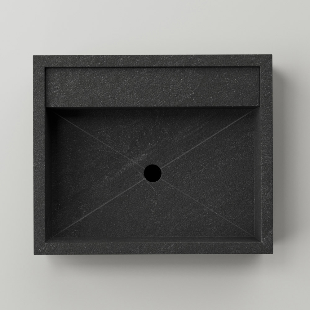 Lavabo sobre encimera rectangular de gres porcelánico efecto piedra Made in Italy.
