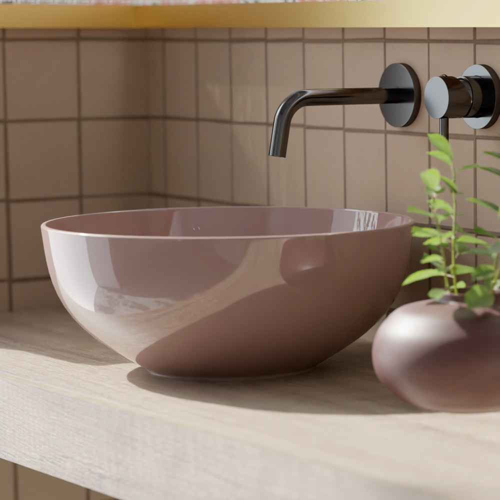 Lavabo sobre encimera de forma redonda hecho a mano en Italia en cerámica coloreada con acabado brillante. Un mueble caracterizado por la sencillez y versatilidad , elementos que lo hacen perfecto para completar cualquier espacio de baño con un estilo moderno, aportando un toque de personalidad y elegancia . Los maravillosos colores propuestos junto con la brillantez del acabado brillante enriquecen la estética, logrando satisfacer mejor las necesidades de quienes aman amueblar sus hogares de manera exclusiva y refinada para un resultado vanguardista capaz de dar carácter al entorno.