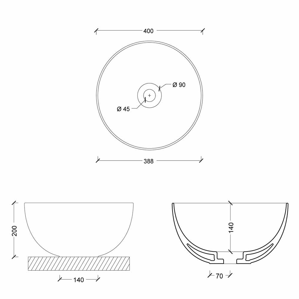 Lavabo sobre encimera de cerámica de diseño moderno Star Round 40 cm, hecho en Italia