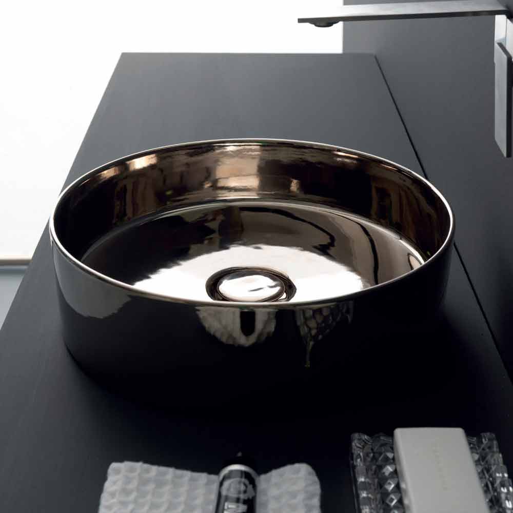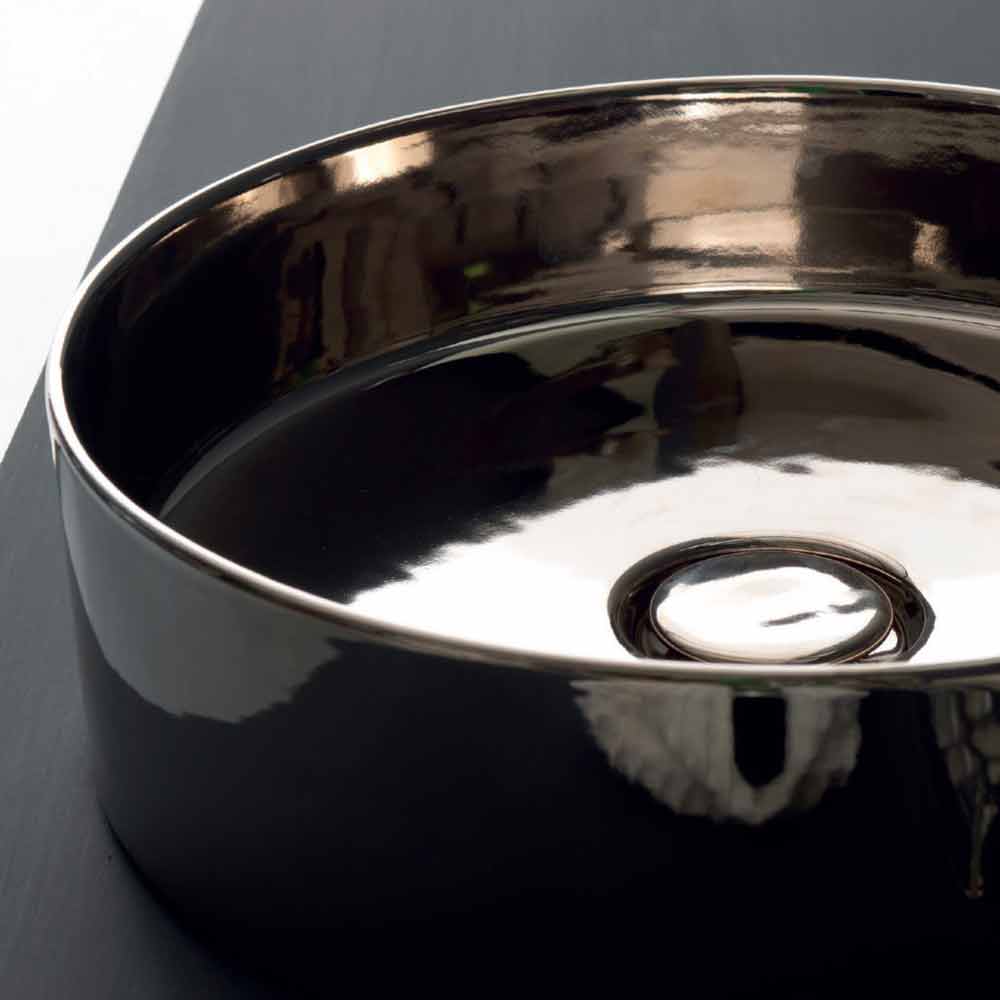 Lavabo redondo sobre encimera de cerámica coloreada hecho en Italia