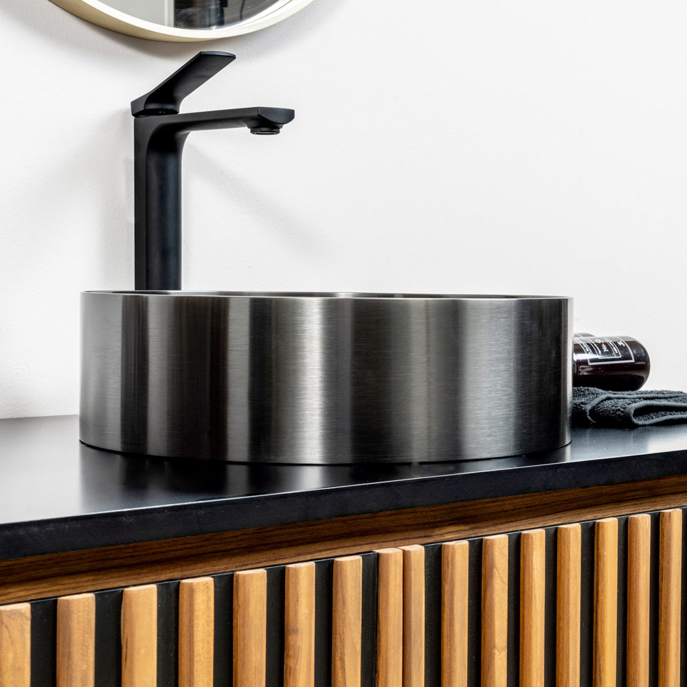 El fregadero sobre encimera redondo de acero inoxidable SUS 304 de 3 mm es una joya de diseño y funcionalidad. Fabricado a partir de una única chapa de metal, ofrece una estética limpia y moderna. El tratamiento de acabado PVD+Nano , combinado con un meticuloso cepillado, confiere al objeto un aspecto atractivo y casi enigmático, realzando el brillo y la resistencia a las manchas y los arañazos. El diseño se caracteriza por formas equilibradas y proporciones ideales, disponibles en tres acabados que se adaptan elegantemente a cualquier ambiente. Además, detalles refinados como la tapa de drenaje coordinada incluida y la ausencia total de soldaduras visibles elevan este fregadero a una verdadera obra maestra de artesanía y diseño, convirtiéndolo en una pieza destacada para baños con un aire lujoso y contemporáneo .