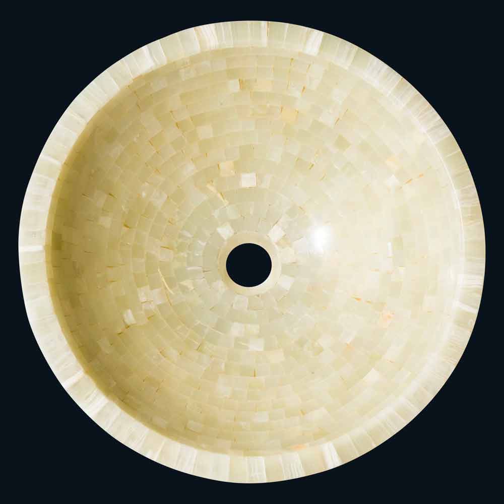 Lavabo sobre encimera redondo en piedra de ónix miel Kilian