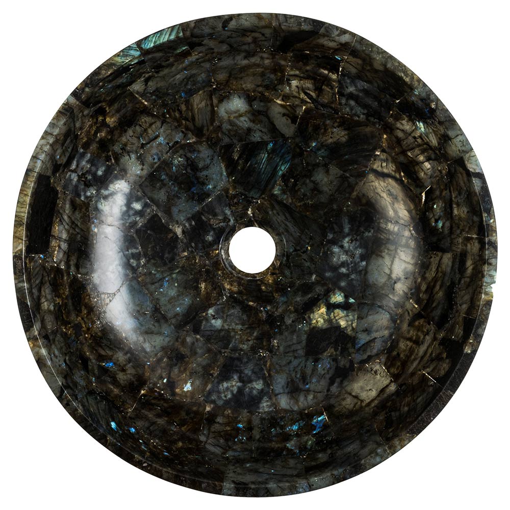 Lavabo sobre encimera redondo hecho a mano en labradorita Peggy