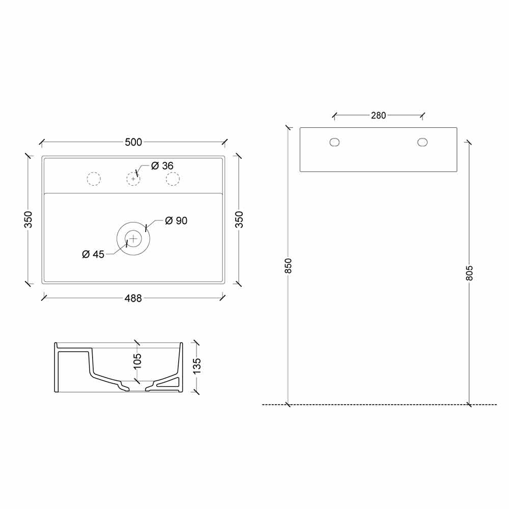 NÓTESE BIEN: Desagüe de cerámica de descarga libre incluido, grifo excluido.