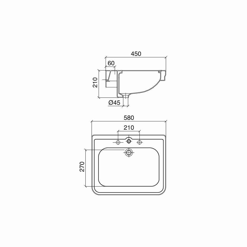 grifería (a especificar al realizar el pedido), L 580 mm.