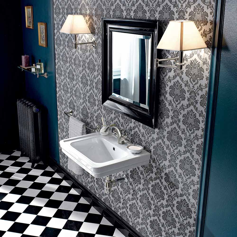 Lavabo suspendido de cerámica blanca de estilo clásico fabricado en Italia, Marwa.