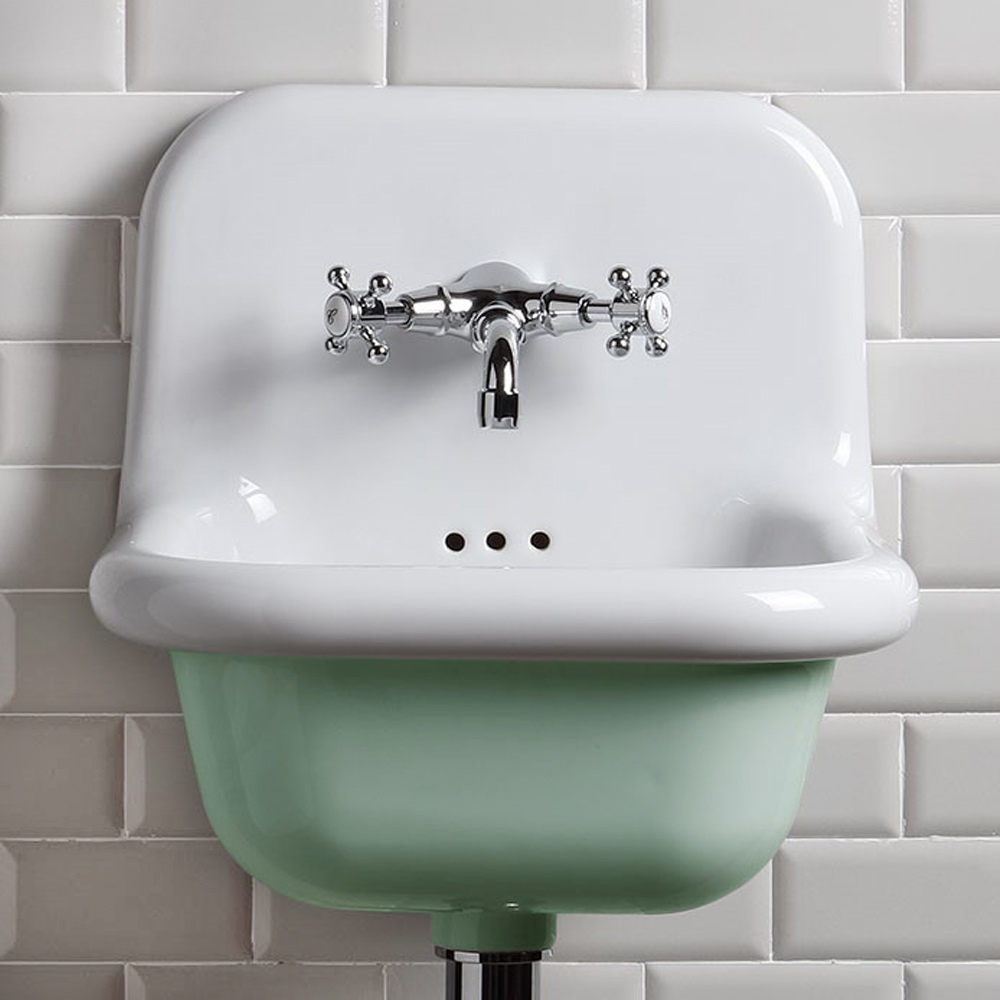 Lavabo de libre instalación moderno en cerámica blanca y coloreada de 42 cm.