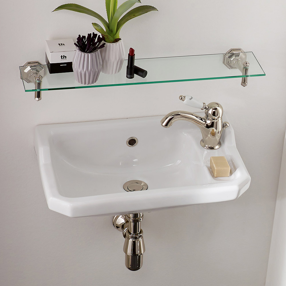 Refinado y elegante lavabo suspendido, listo para un grifo lateral de grifería, L 500 mm. Este artículo está hecho íntegramente en Italia en cerámica.