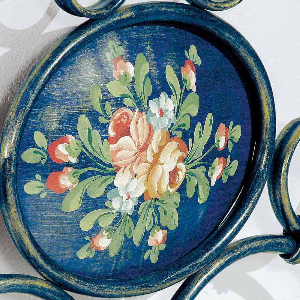 En el acabado Azzurro-oro, Alexa se enriquece con un hermoso medallón presente en la cabecera, decorado a mano.