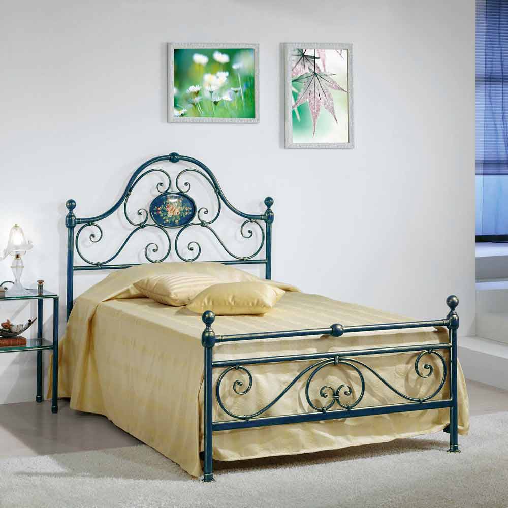 Esta cama está hecha de hierro forjado y es trabajada y forjada completamente a mano por artesanos expertos, de acuerdo con las antiguas técnicas del pasado, que explotaron el tubo aplastado para la realización del rizo, que posteriormente se llenó con un remache.