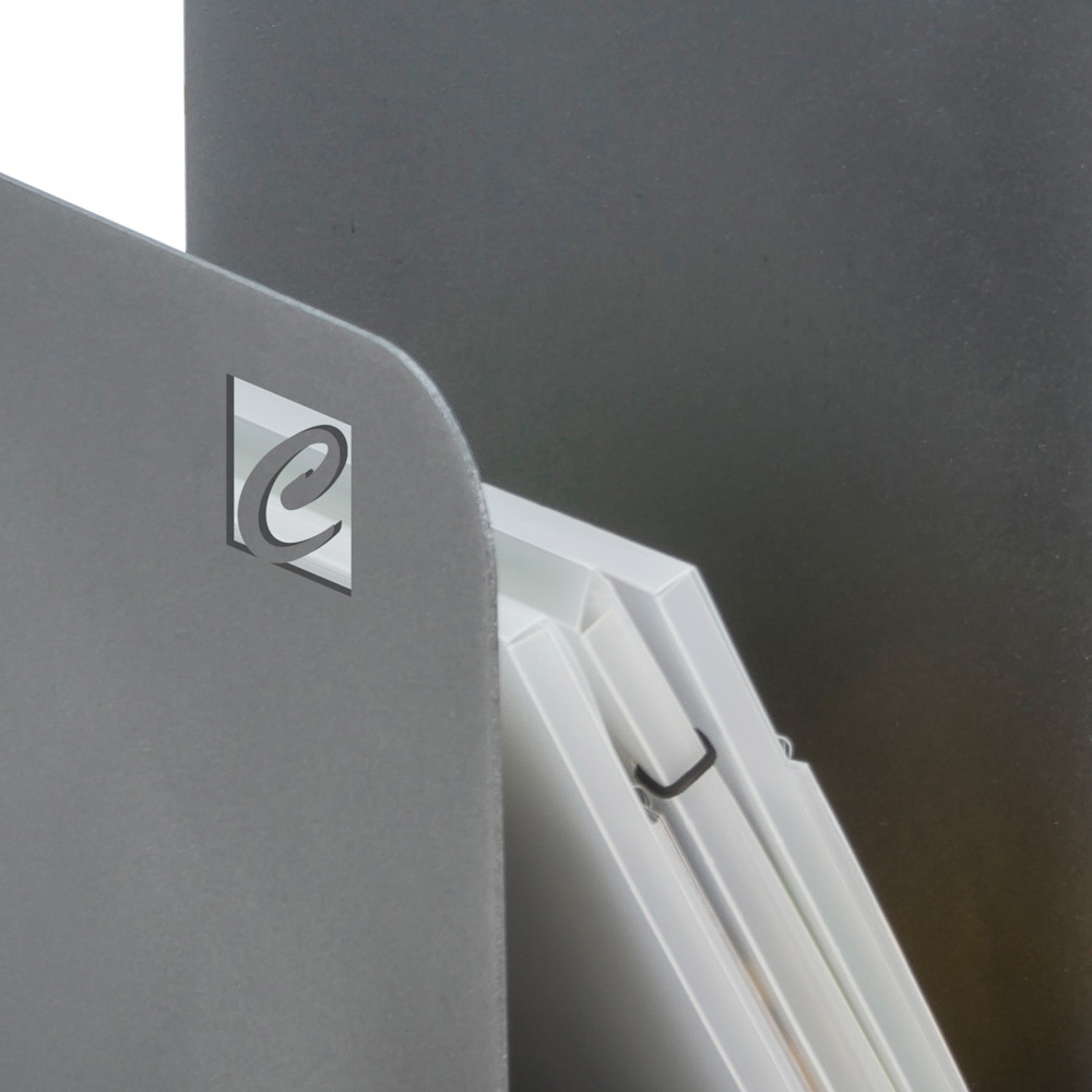 Leñero/mesa de centro/revistero de diseño moderno en acero gris fabricado en Italia.