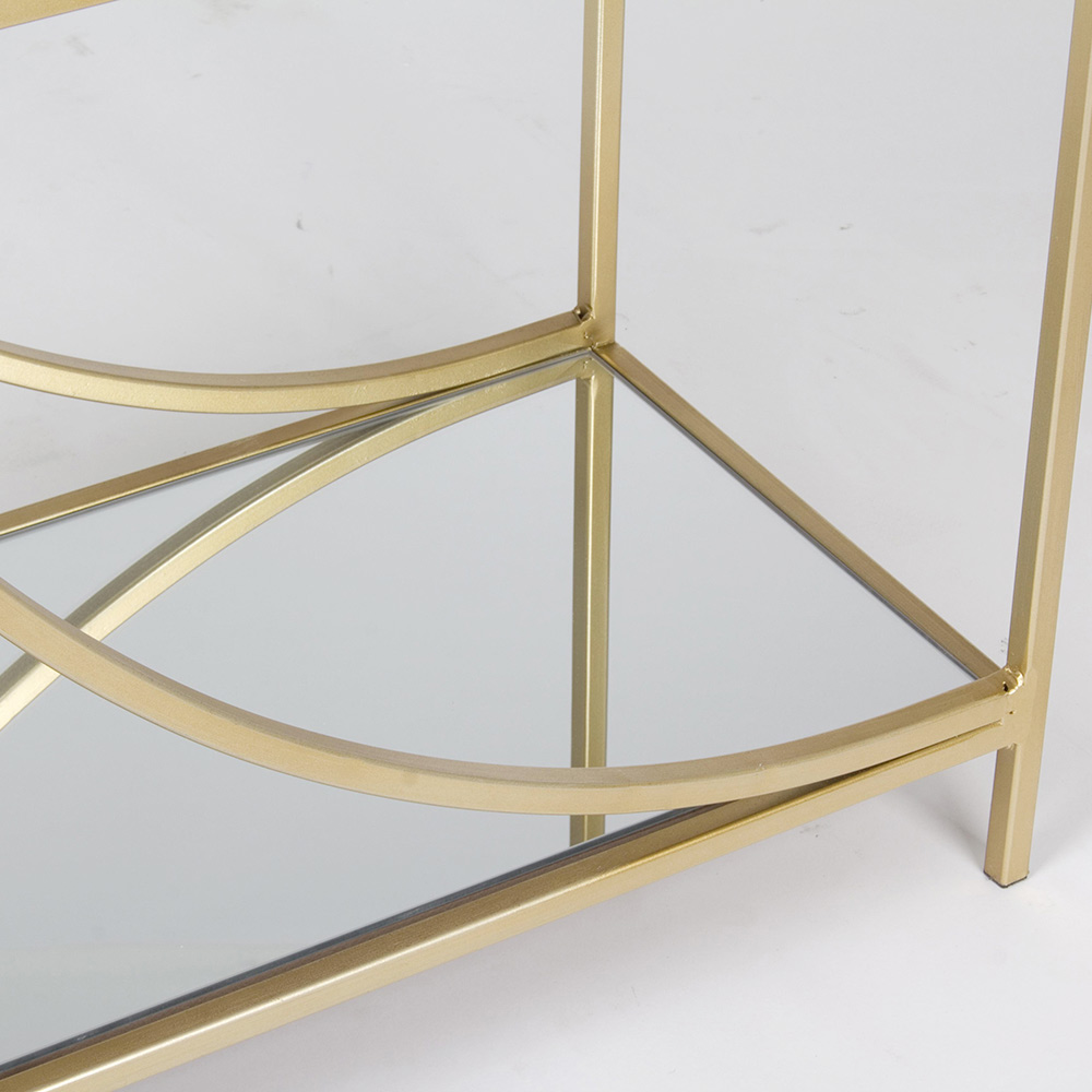 Esta estantería independiente cuenta con un marco de acero con recubrimiento de polvo epoxi bajo y estantes de vidrio.