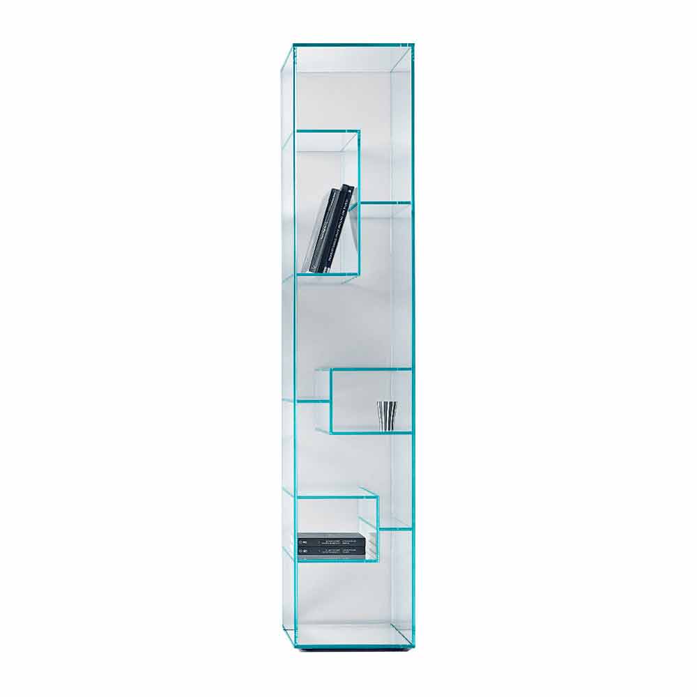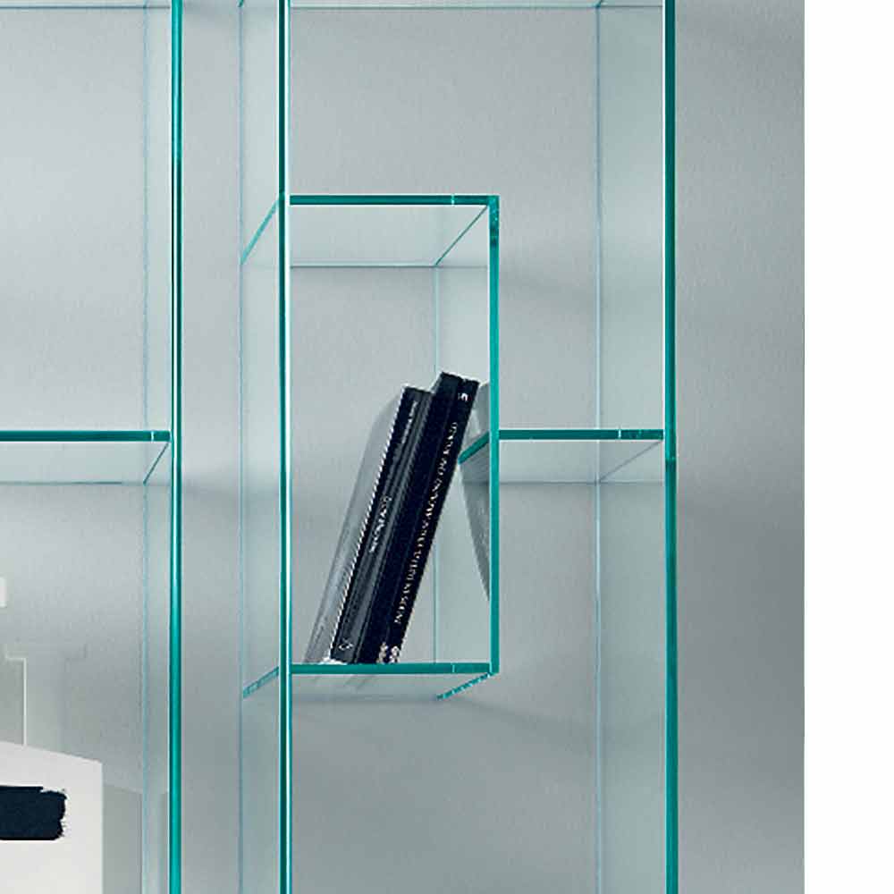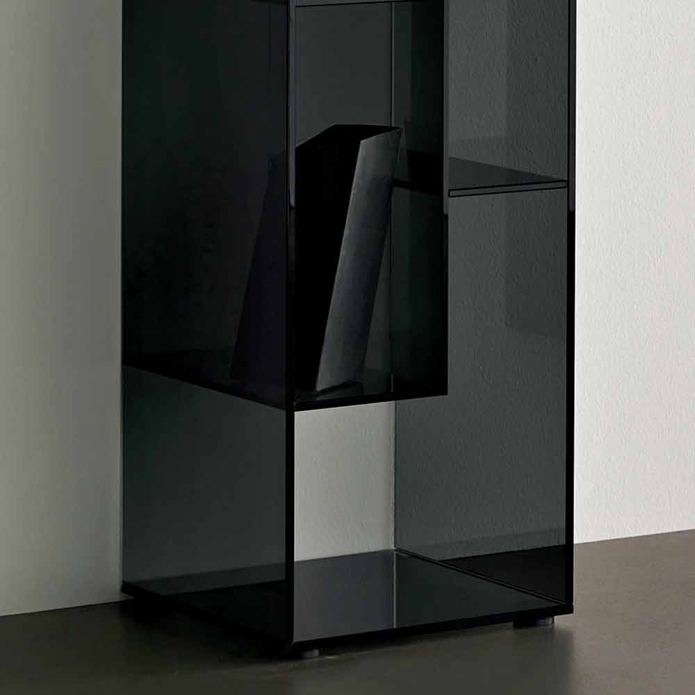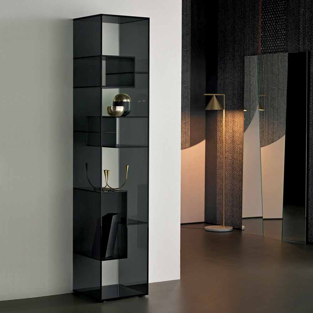 Esta librería expositora se caracteriza por su diseño decidido y elegante, íntegramente realizado en vidrio extraclaro o ahumado.