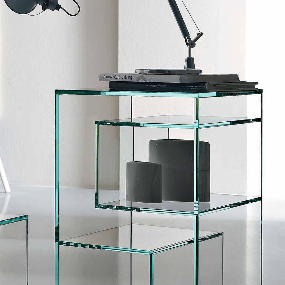 Esta librería expositora se caracteriza por su diseño decidido y elegante, realizado íntegramente en cristal extraclaro.