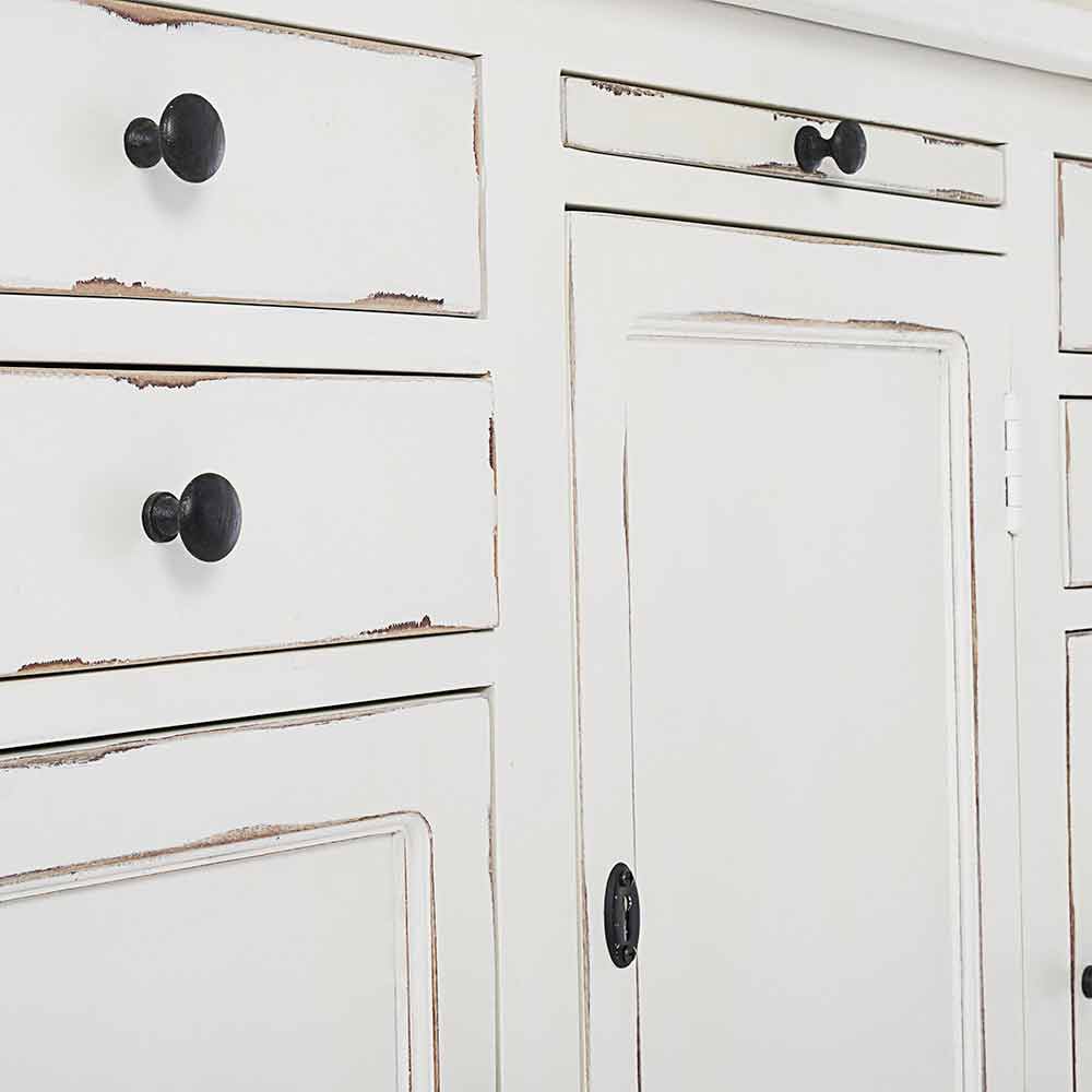 Librería de suelo de estilo clásico fabricada en madera de mango y MDF con tiradores de hierro fundido.