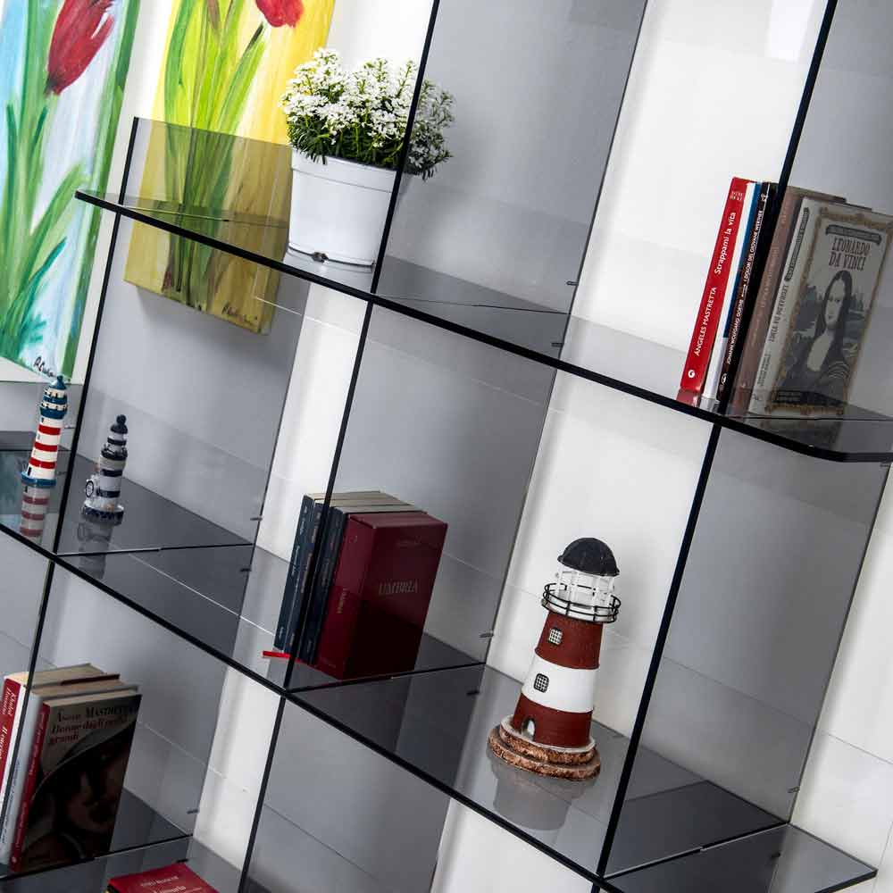 Librería de pared ahumada Sfera3 L180 x H180 x P30 cm, hecho en Italia
