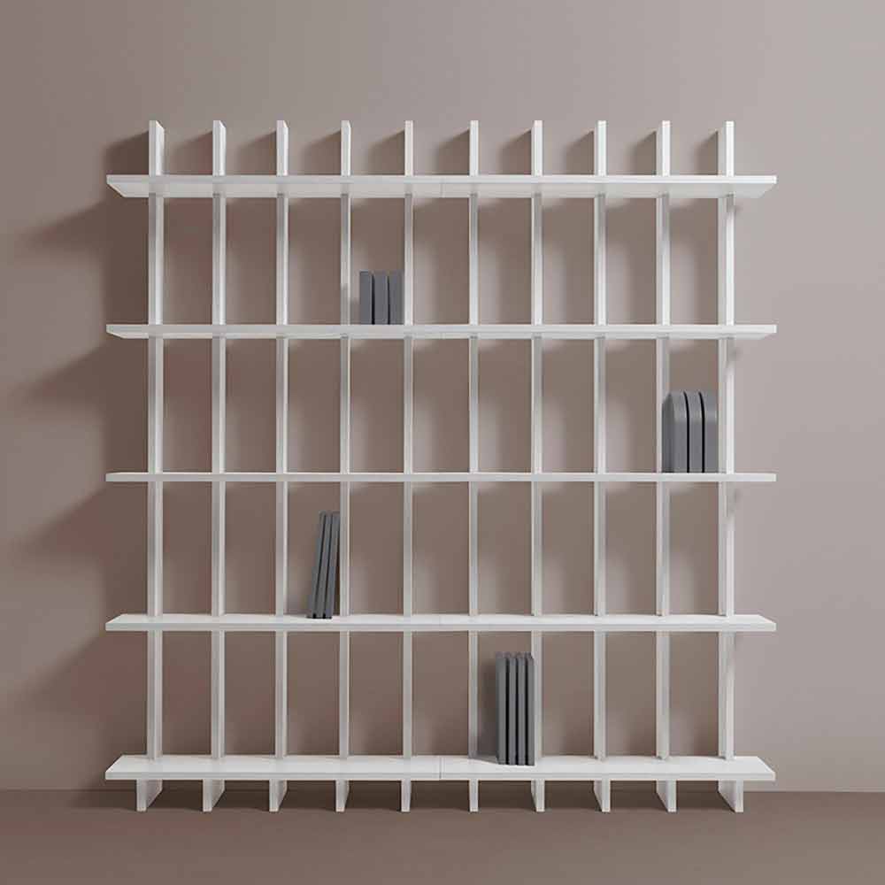 Librería de pared en fresno lacado a poro abierto con diseño shabby chic en diferentes colores, fabricada en Italia.