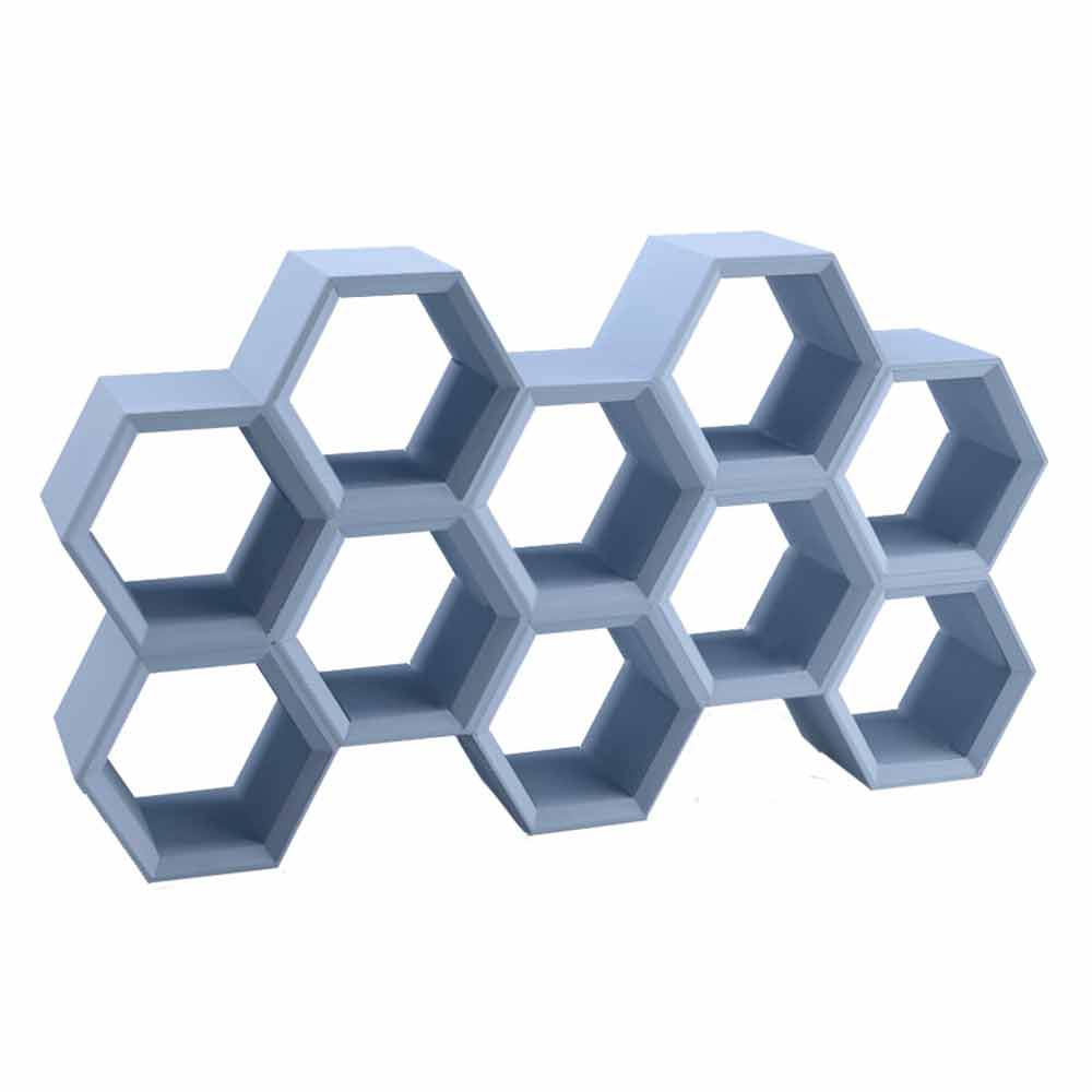 Hexa es una librería de polietileno cuya forma está inspirada en la naturaleza. Las celdas conectadas que lo componen forman un mueble versátil apto tanto para uso doméstico como no doméstico. La forma geométrica es elegante y con sus seis lados permite al menos dos lados de apoyo para cada espacio.