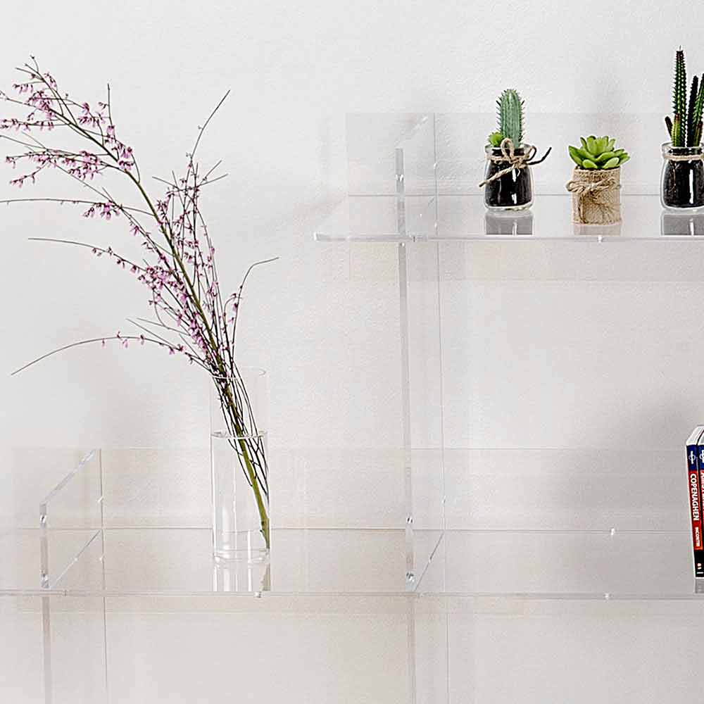 Biblioteca privada con líneas mínimas y el efecto de la suspensión en el vacío para los libros que lo proveen: solo los libros, de hecho, personalizan el entorno doméstico. La estantería transparente SFERA3 nació como una biblioteca autoportante, pero es posible anclarla a la pared. Las características físico-técnicas del plexiglass (a prueba de golpes, indeformable, inalterable, aislante del calor) hacen que el producto sea adecuado tanto en el hogar como en el exterior. El brillo y el brillo se mantienen constantes y sin cambios a lo largo del tiempo. El plexiglás de PMMA de polímero virgen utilizado por es no tóxico, hipoalergénico, inodoro y antibacteriano. 100% reciclable Cumple con UNI EN 71-3: 200. Diseñado, diseñado y fabricado en Italia, con materiales italianos.