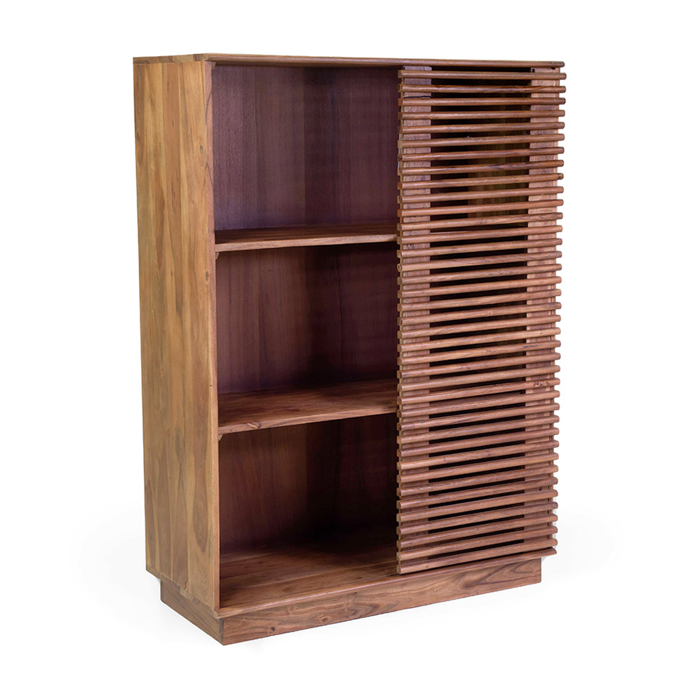 Aporta elegancia y funcionalidad a tu hogar con esta librería de madera de acacia que cuenta con una práctica puerta corredera . La madera de acacia, con sus vetas naturales y tonos cálidos, hace de este mueble una pieza única y sofisticada.