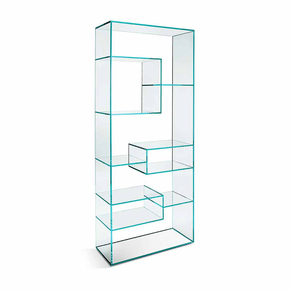 Esta librería expositora se caracteriza por su diseño decidido y elegante, realizado íntegramente en cristal extraclaro.
