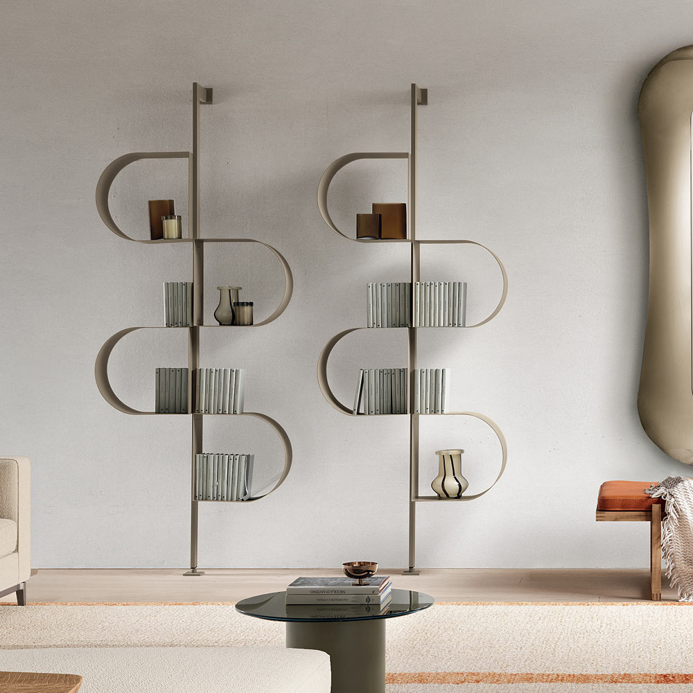 Una elegante librería de diseño, fabricada en Italia , ideal para amueblar con estilo el salón , el estudio o los pasillos. Su diseño contemporáneo destaca por su estructura minimalista y estilizada, que aporta ligereza visual a cualquier espacio.