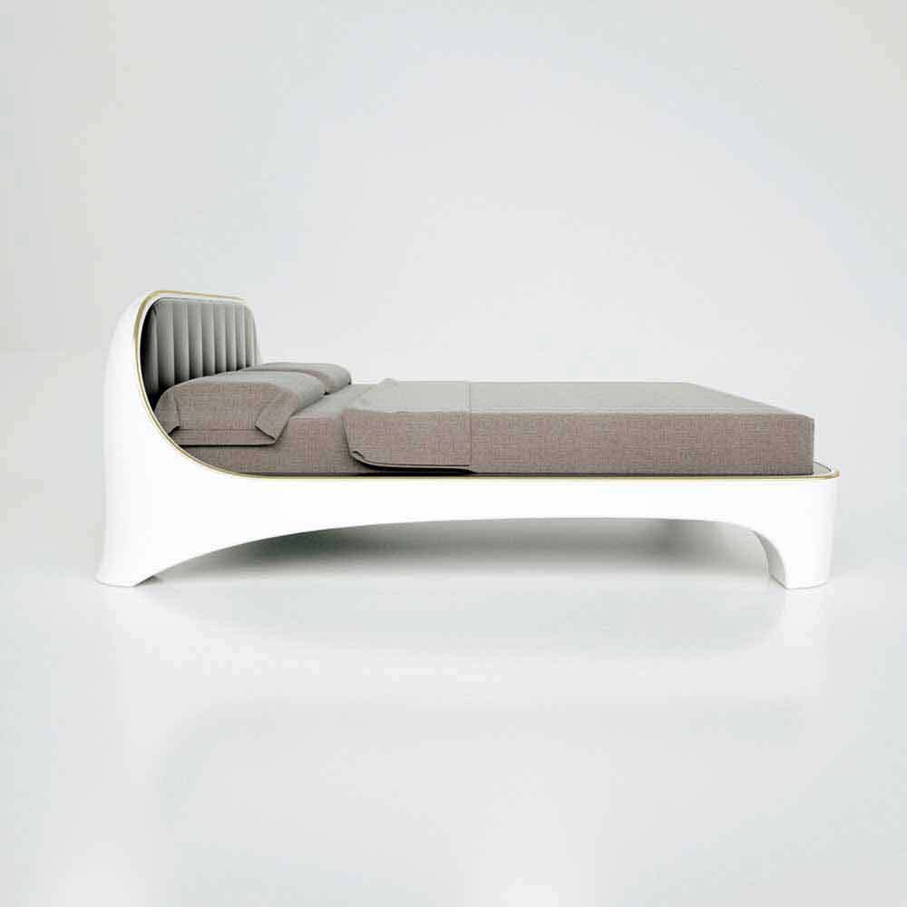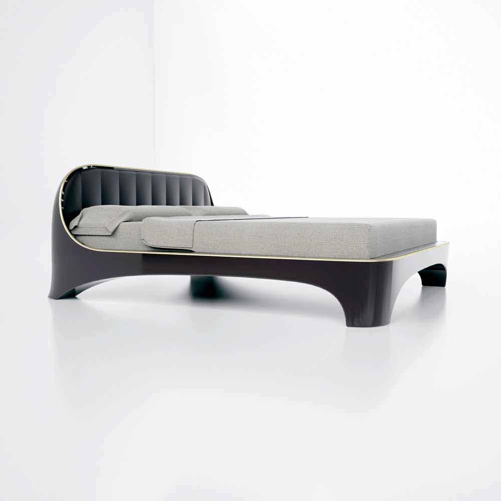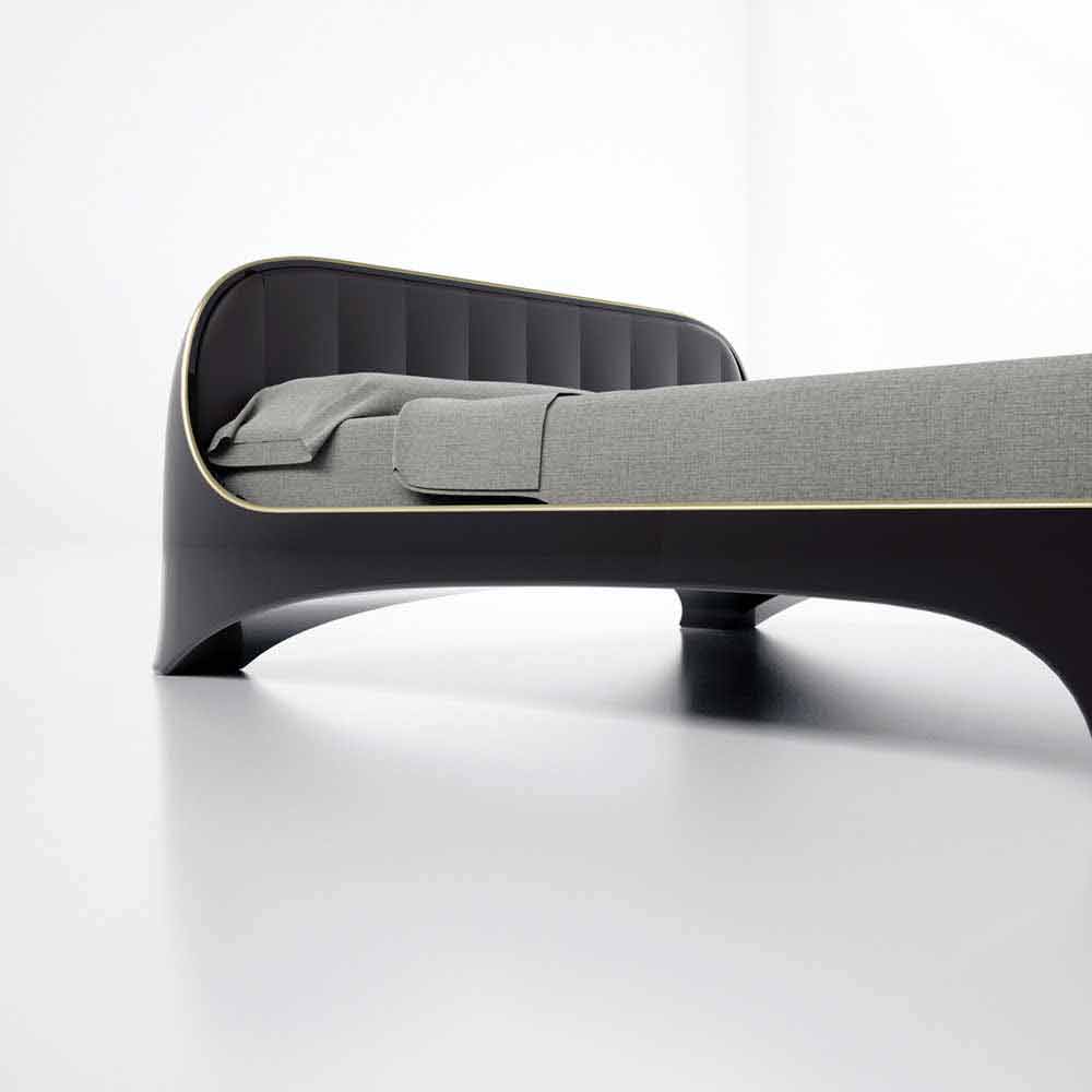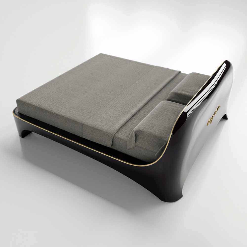Líneas agresivas, pero al mismo tiempo sobriedad y elegancia, para una cama exclusiva para colocar en ambientes de prestigio.