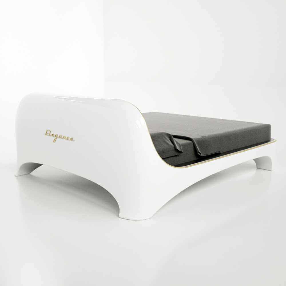 Curvas suaves, canto en color dorado o plateado y cabecero tapizado en piel hacen de Elegance un claro homenaje a la elegancia y refinamiento de los coches de antaño.