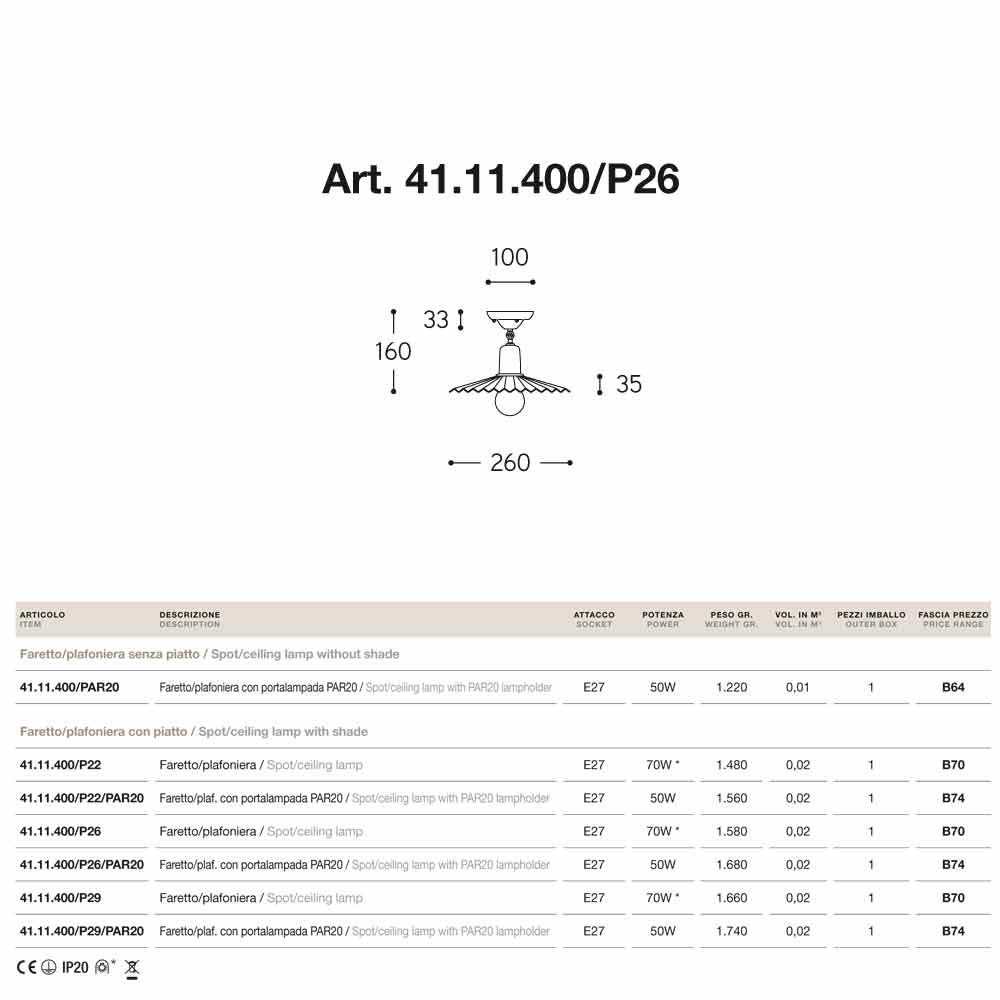 Civetta está disponible en 3 tamaños diferentes: plato de 22 cm, plato de 26 cm, plato de 29 cm.