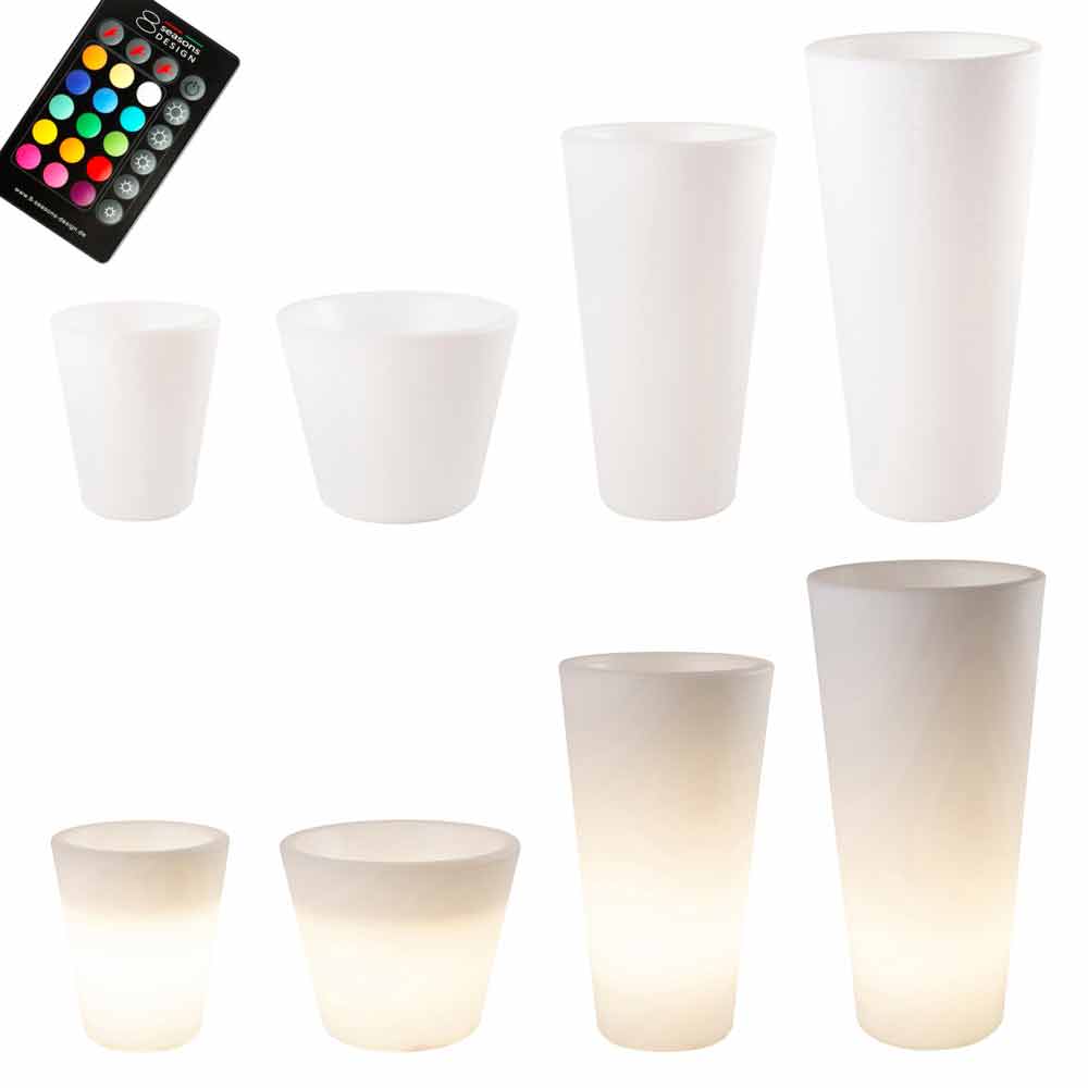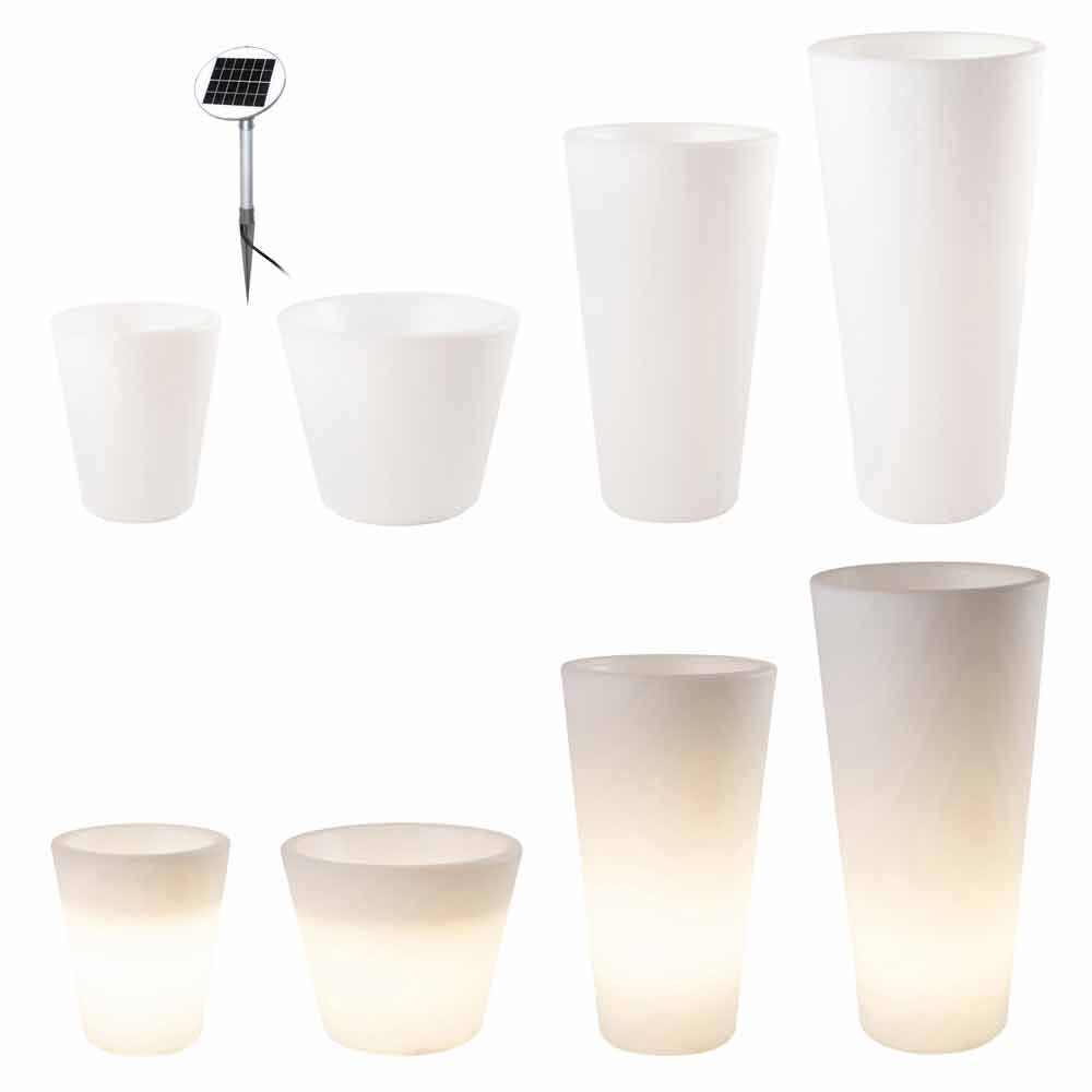 Florero luminoso blanco y de diseño moderno para interior o exterior con led o solar en varios tamaños.