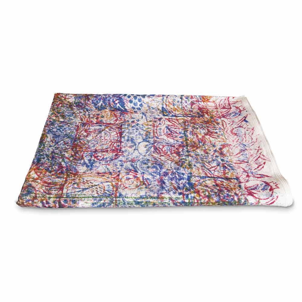 Mantel multiusos (colcha, funda de sofá, funda de mesa) de algodón rectangular de una sola pieza de gran tamaño con motivos de colores impresos a mano hechos en Italia.