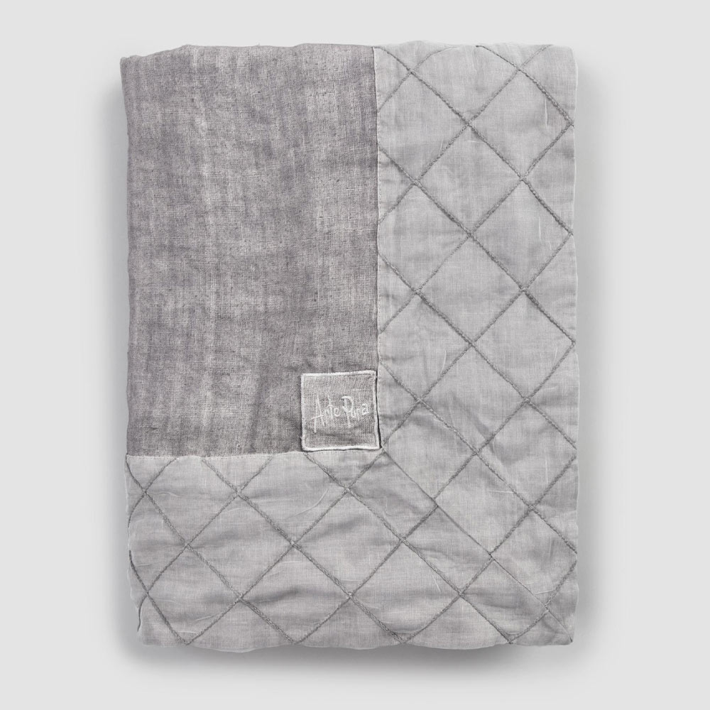 Mantel de lino antracita y borde con decoración geométrica, hecho a mano - Dippel