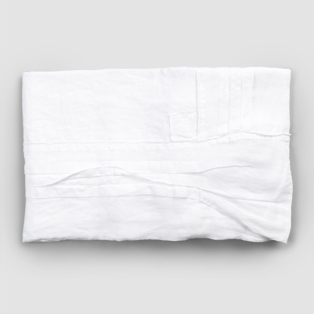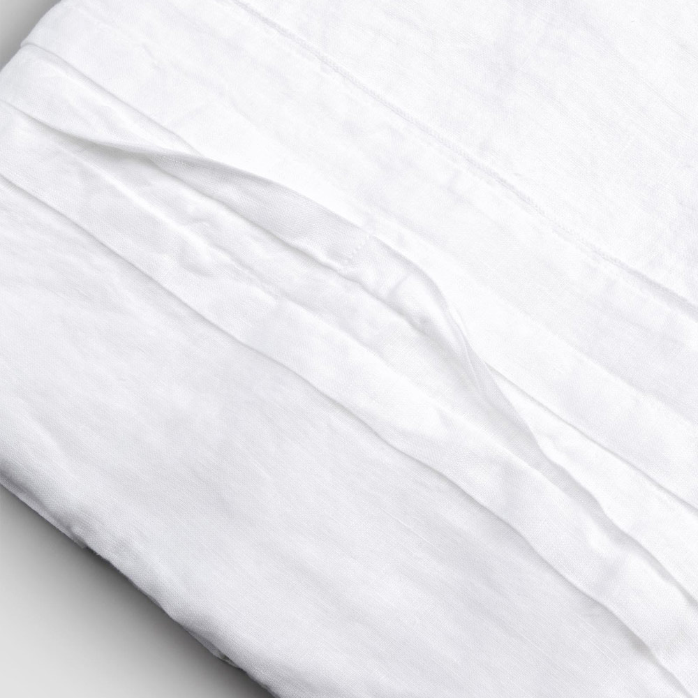 Mantel de lino blanco con borde plisado, lujo made in Italy.