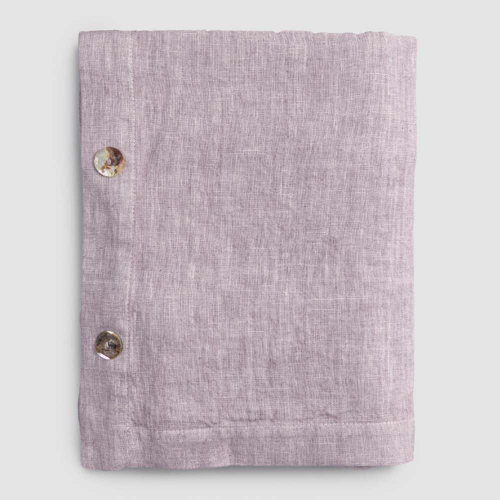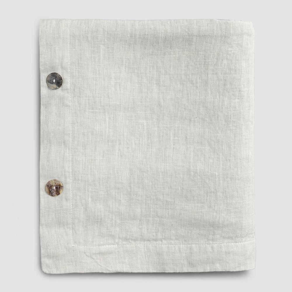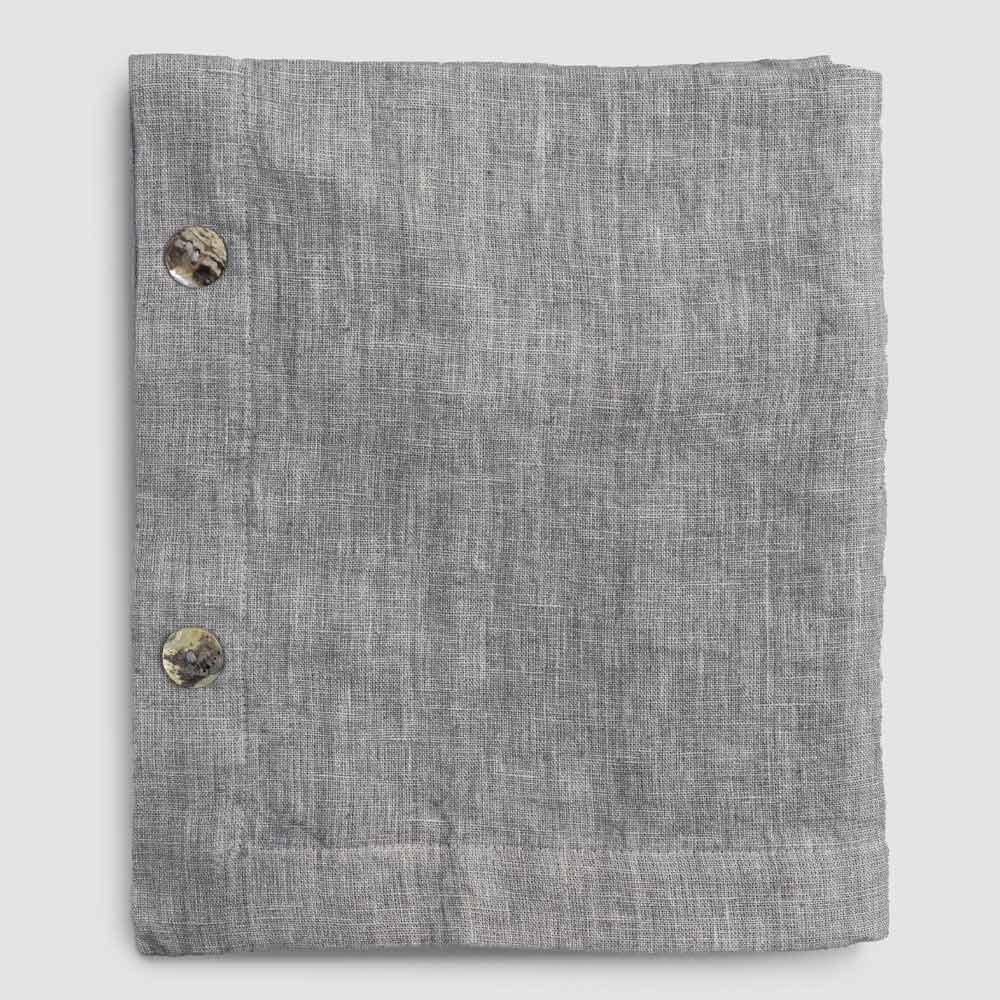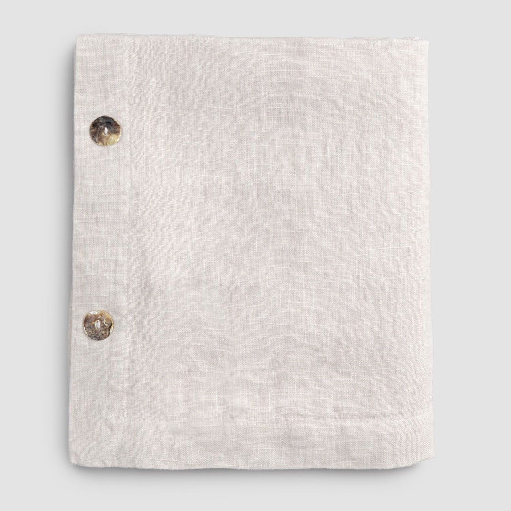 El valor de la tradición se une al estilo de vida moderno con este pesado mantel de lino adornado con una serie de botones de nácar agoya en un lado largo.