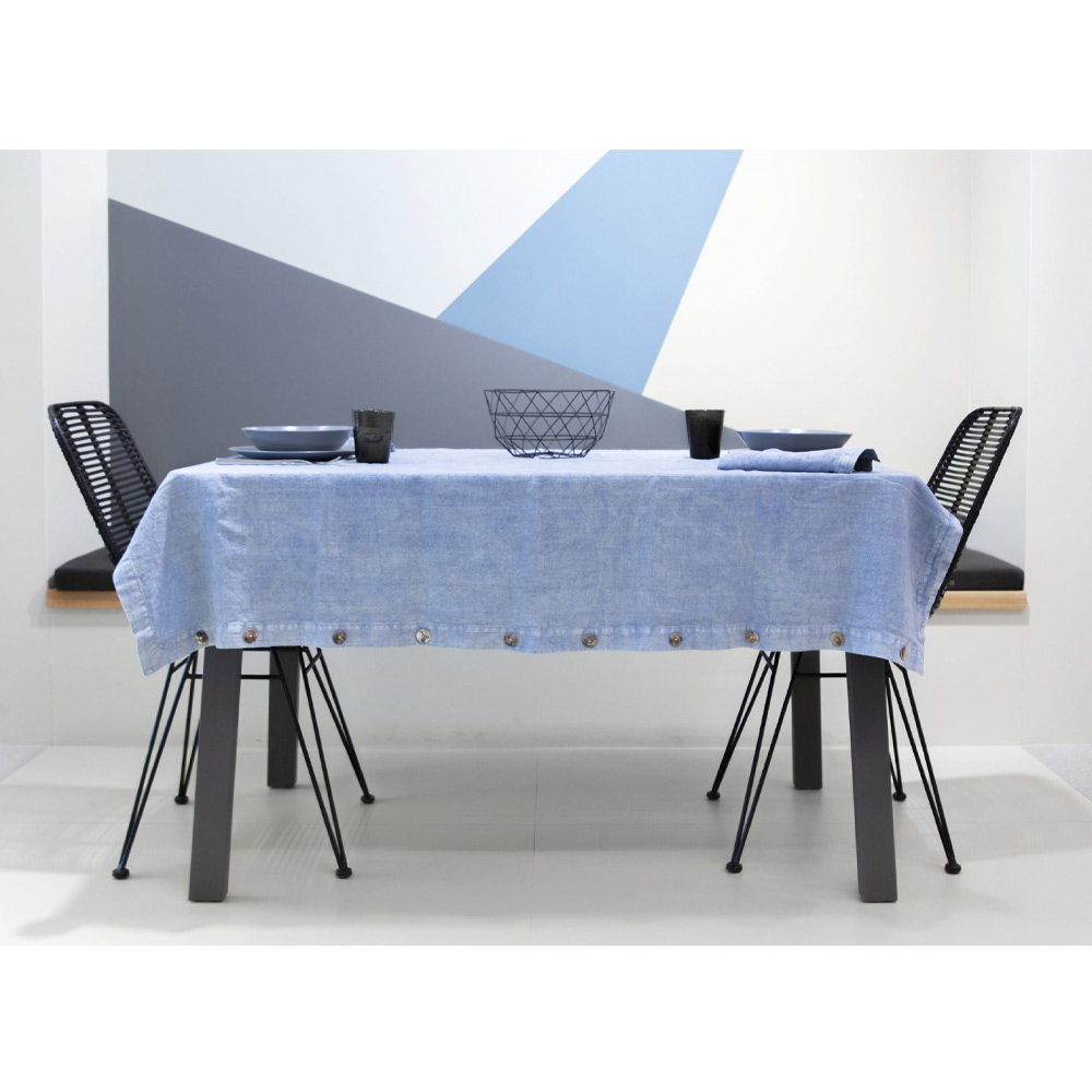 Mantel rectangular de lino con ojales y 10 botones, lujo - Mediterráneo